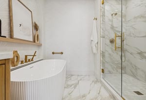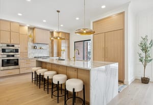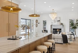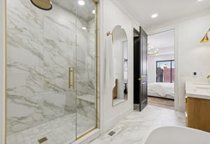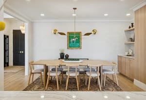 Located in Denver’s sought-after Polo Club North gated neighborhood, this exceptional residence has been thoughtfully renovated by award winning architect, Danilda Polanco, founder of DOPE architecture, showcasing meticulous craftsmanship throughout. The main floor showcases a desirable primary suite and beautifully curated living spaces that seamlessly connect indoor and outdoor living. The chef’s kitchen features a custom David Bradley kitchen with panel ready Thermador appliances, natural quartzite counters, double oven, and a large island with dramatic waterfall countertops, all opening to a formal dining room ideal for entertaining. Adjacent, the inviting living room is anchored by a wood-burning fireplace with a marble surround and opens through glass sliders to a tranquil patio overlooking a gently flowing stream. The main-level primary suite offers a private retreat with its own patio, a spacious custom-built closet, and a five-piece bath complete with a fluted soaking tub, Kohler fixtures and heated floors. Upstairs, a secondary primary suite includes a full bath with Ann Sacks tile, generous walk-in closet, and second washer and dryer. Two additional bedrooms and a sunlit office area with built-in storage complete the upper level. The fully finished basement expands the living space with a large recreation area featuring a built-in bar, plus an additional bedroom and bath—perfect for guests or extended living. Polo Club North is prized for its proximity to Cherry Creek and its exceptional community amenities, including tennis and pickleball courts, an indoor pool, fitness center, and a vibrant calendar of neighborhood activities, offering a truly refined and convenient Denver lifestyle.