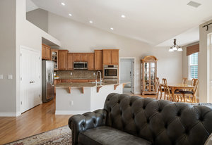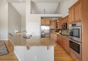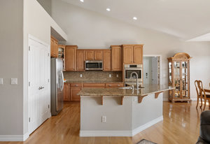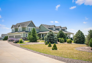 wraparound views. The expansive 2,655-square-foot basement is already plumbed for an additional bath and small kitchen, offering endless possibilities. The fully finished, insulated, oversized four-car garage features built-in storage and 8-foot doors.