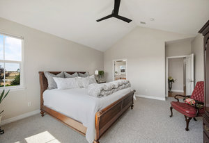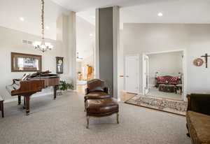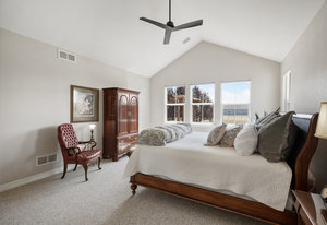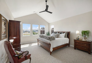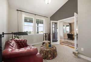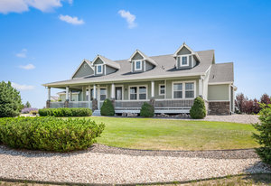 This peaceful 2.4-acre property is fully fenced and features a stunning 50x50 garden, beautifully landscaped with mature trees and lush lawns. Enjoy breathtaking, unobstructed mountain views from the expansive TREX wraparound deck—an ideal setting for relaxation. Nestled in the tranquility of country living, this family home offers an open floor plan with vaulted ceilings throughout, perfect for those who entertain musically. At the heart of the home is the gourmet kitchen featuring a Wolf Induction stovetop, double Bosch ovens, custom Maple cabinetry with pull-out drawers, and a spacious double pantry. Sunlight pours into every room, with each window offering sweeping views of your private oasis. The main floor includes four generously sized bedrooms, one of which is ideal as an office, or library. You’ll also find a full bath and a convenient half bath. The primary suite offers a luxurious retreat with a spa-like ensuite and a large walk-in closet. The well-appointed laundry/ mudroom features built-in cabinetry, a bench, and a closet for added storage. Upstairs, a private suite boasts a large living area, a full bath, and a spacious bedroom with