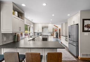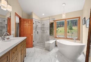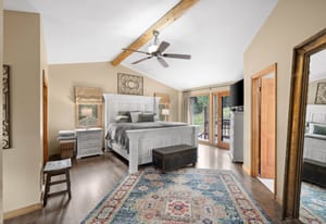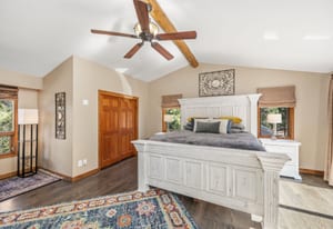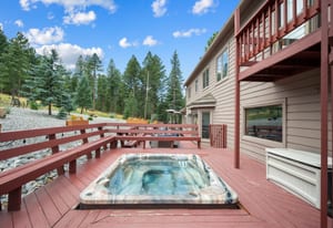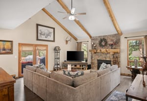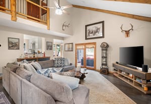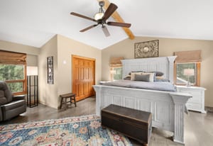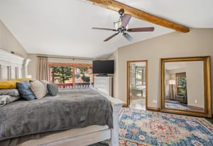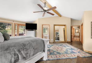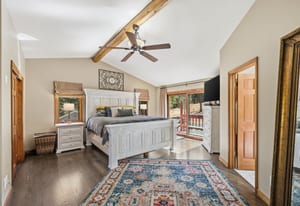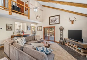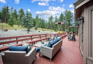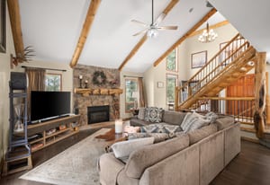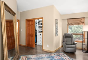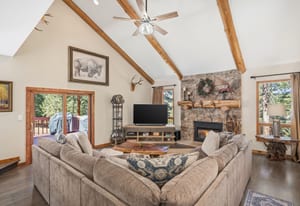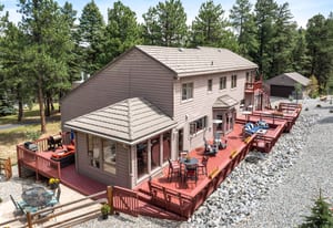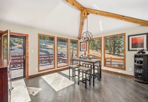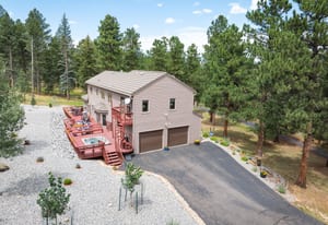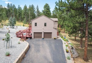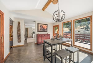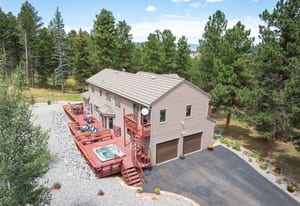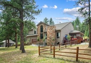 Stunning gated sanctuary at the end of a very quiet paved cul-de-sac. Turn key ready with every detail meticulously maintained. Hardwood flooring throughout the entire main level and upper level. The kitchen remodel to include high end custom kitchen cabinetry, leather honed granite countertops, custom pantry and breakfast nook positioned with a cozy fireplace. The kitchen is equipped with a Cafe Platinum Glass smart refrigerator, stainless steel KitchenAid gas range with warming drawer, KitchenAid dishwasher, Breville counter top oven, single bowl composite sink & Zline microwave drawer. Oversized glass bi-fold custom doors in the breakfast nook open to the back deck. Imagine hosting gatherings and BBQ's on this spectacular deck. The dining room is positioned to take in the views. The Primary Suite is spacious to include 2 walk in closets and private deck! The primary bathroom is a spa like oasis! Enjoy the freestanding soaking tub, spacious walk in shower, double vanity, linen closet & in floor radiant heat. Soaring vaulted ceilings with log accents and custom stone gas fireplace. The floor plan of this home is very thoughtful with 3 upper level bedrooms & newly remodeled guest bathroom. The striking log staircase with iron railings makes a statement the moment you walk in. The lower level includes a guest bedroom, full bath & bonus room that is currently used as a gym. The recreation room is the perfect space for indoor entertaining. Professionally landscaped yard with an invisible dog fence and fenced front area. Imagine soaking in the hot tub and gazing at the stars. Oversized attached 2 car garage with new epoxy flooring, a heat system, built-in shelving and an EV charging station. Detached 2 car garage, built-in cabinetry and a workshop area. RV pad with electricity. Extensively fire mitigated with a metal/composition roof. Zoned A2, Well allows water for horses. No HOA