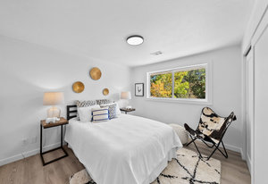 This beautifully reimagined mid-century ranch, built in 1958, offers 1,610 sq. ft. of thoughtfully designed living space on a generous 5,793 sq. ft. lot. Nearly every detail has been transformed in a comprehensive renovation, including new wood flooring, plush carpet, a modern kitchen with appliances, two rebuilt bathrooms, updated lighting, all new electrical, furnace, evaporative cooler, windows, hot water heater, fresh exterior paint, and landscaping—creating a home that feels entirely new yet full of character.