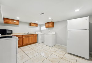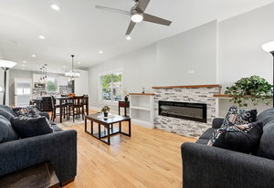 The finished lower level adds approximately 1,027 square feet of additional finished space with secondary kitchen area, laundry, bathroom, and generous open areas suitable for guests, work-from-home use, fitness, or hobby space. Recent improvements include professionally relocated ductwork and raised doorways, enhancing ceiling clearance and overall livability while maintaining an open, versatile design.