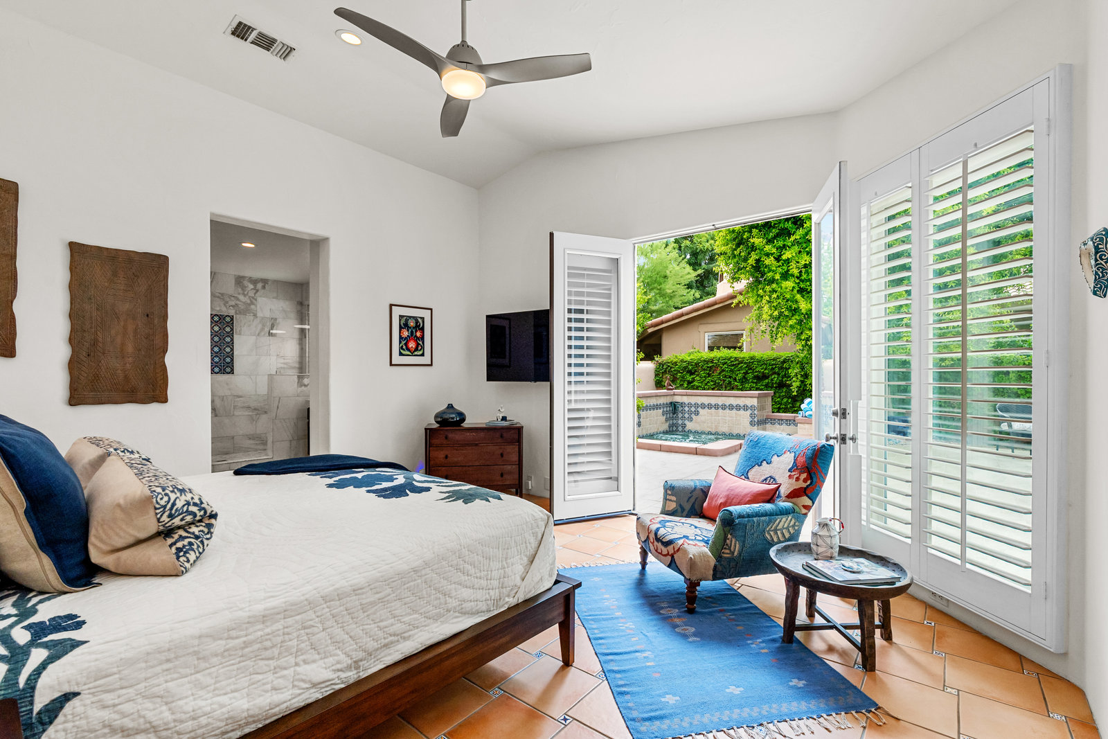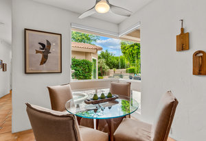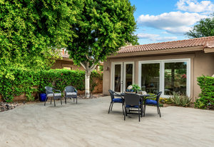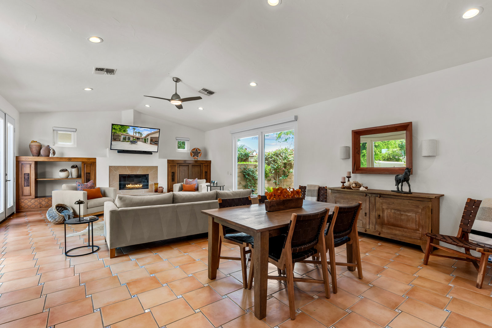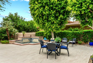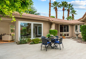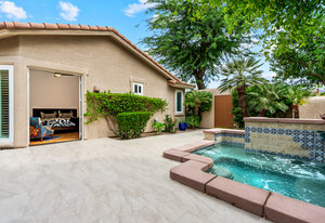 Located within the prestigious gated community of Rancho La Quinta Country Club this beautifully remodeled 3 bedroom 2 bath home in the ventana's enclave blends classic charm with modern desert living. The home features original Saltillo tile floors with authentic Mexican accents creating a warm and inviting atmosphere. The open concept living area flows seamlessly to the outdoors with large doors that open to a private enclosed courtyard featuring a spool( spa/pool ) perfect for relaxing or entertaining under the desert sky. The interior is tastefully decorated and thoughtfully designed to capture the essence of indoor outdoor living. Available March/April 2026