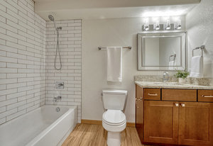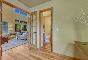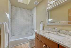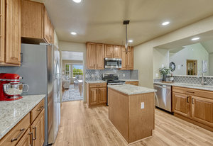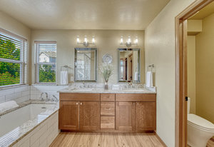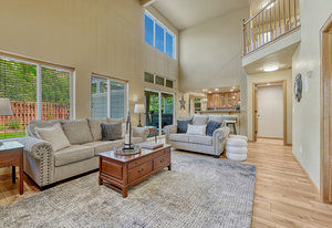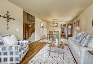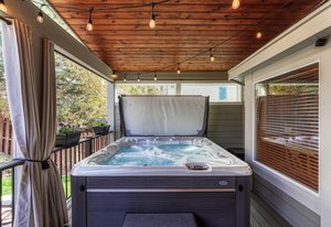 Additional features include * new carpet throughout the upper and lower levels, *new luxury vinyl tile on the main level *new backsplash in kitchen and bathrooms *window treatments, *LED lighting throughout *Whole house has James Hardie fiber cement siding w/ warranty *custom deck with cover *salt water hot tub *new thermostat with app *new patio slider *new exterior lighting *new insulated garage door and opener with app *75 gallon water heater with extended warranty *new faucets and hardware in kitchen and bathrooms *new cabinets, sinks and toilets throughout *new tile in tubs and showers *new ceiling fans in upstairs bedrooms *new sprinkler controls with app, and much more.