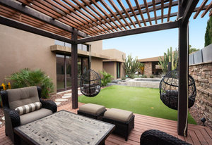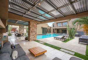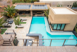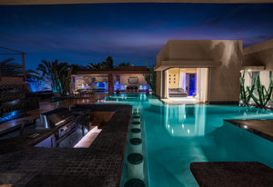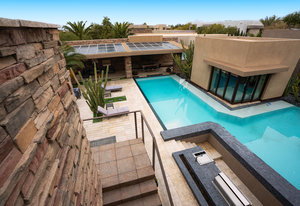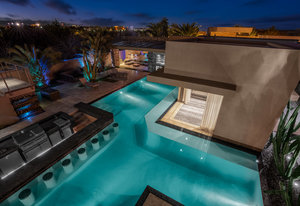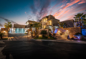 Motivated Seller! - A rare opportunity to secure an award-winning 4-level Blue Heron “Modern Vegas” estate below market value. Minutes from the Strip on iconic Tomiyasu Lane in gated Marquis Las Vegas, this home delivers true luxury living. Fleetwood pocket doors open to a resort-style yard with vanishing-edge pool, swim-up bar, sunken BBQ kitchen, spa, fireplace, TV, waterfall, and lounge areas. The rooftop skydeck features a covered bar, fireplace, TV hookups, and 360° Strip/valley views. Inside: elevator, theater, loft bar/game room, smart tech, wine cellar, chef’s kitchen with Viking appliances, double ovens/fridges, butler’s pantry, hobby/laundry room, 4-car garage,...