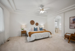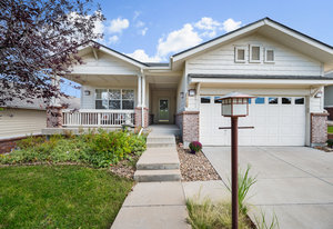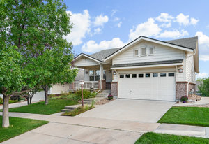 Social and active living at its best in Heritage Eagle Bend Golf Club, a 45+ age gated community in SE Aurora featuring an 18-hole, par 72 championship golf course designed by Arthur Hills! A grand clubhouse, Eagle’s Nest restaurant, indoor and outdoor pools, workout facilities, multiple sport courts including bocce, pickleball, tennis, event spaces, library, and even a billiards room for vibrant socializing opportunities or peacefully enjoying the plentiful amenities. This Legacy model 601 floorplan home features a covered front porch, 2 bedrooms and 2 bathrooms on the main floor plus a generously sized laundry room/office! Open kitchen with large walk-in pantry plus smooth counters and barstool height seating offers a versatile space for dining, cooking, and living. Gas fireplace and built-in TV nook in the living room. Two private patios for enjoying the ideal Colorado climate. Attached 2 car garage with plentiful storage and a built-in worktable and shelving. Full, walk-out basement with a covered patio outside its sliding glass doors provides unfinished square footage to double your home’s living space and bring your design dreams to life with your custom touches!