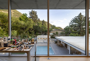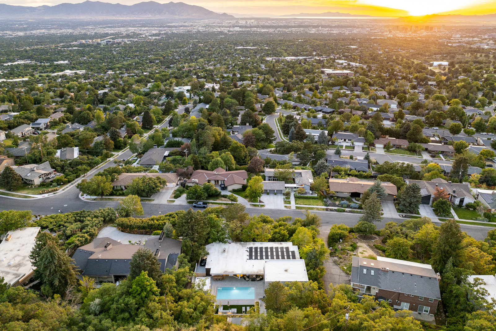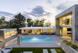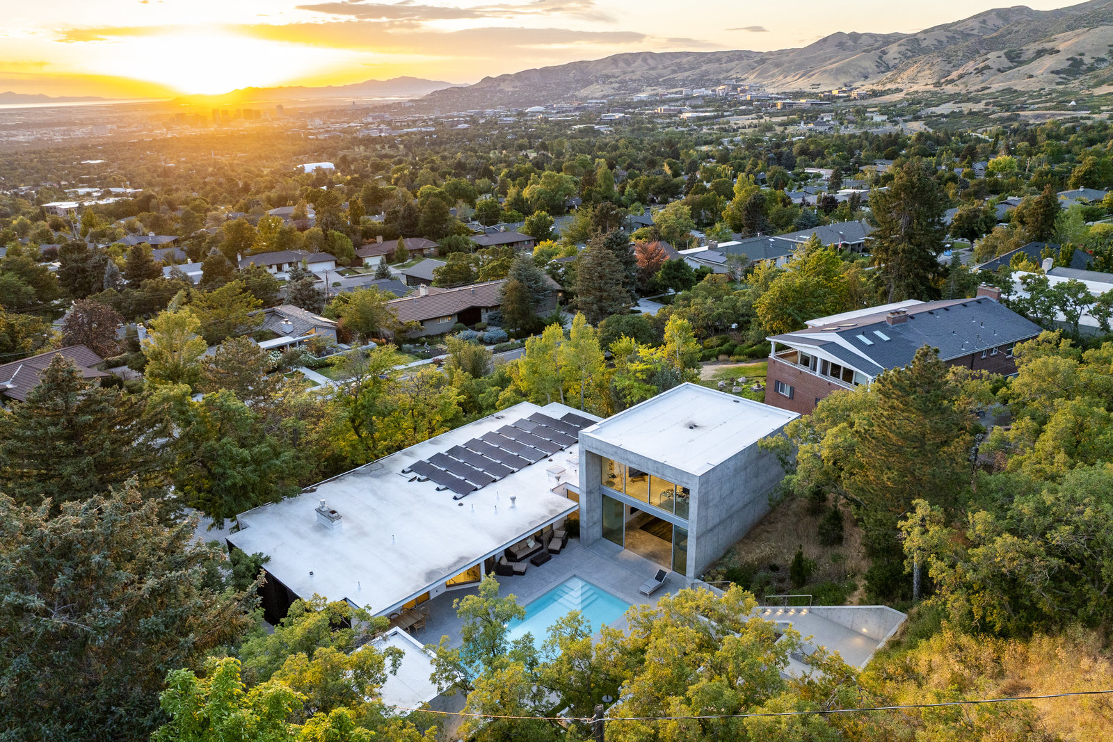 Originally designed by Jim Christopher, the home already embodied so many of the hallmarks of great design. Through a precise and reverent renovation, the original home has been elevated to its highest potential. The property has been further transformed by Sparano + Mooney, one of Salt Lake's most innovative architectural firms. Their modern addition in the back-affectionately known as The Cube-sits in quiet conversation with the original structure. A brutalist form of glass and concrete, it exudes calm and composure, its presence both grounding and transcendent. Water reflects against its glass facade from the pool below, in whispering movements, like breath-work. Polished concrete floors join with an exposed concrete wall. Floating stairs rise beside a massive Poliform library wall. The scale and texture are breathtaking. The architectural lines extend to the pool, pool equipment pad, and garden area. A hot tub, sheltered from the hillside by a concrete partition, sits just above the roofline to capture all the sunset and city views.