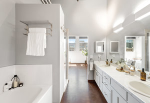 Two spacious bedrooms, two bathrooms, and a separate office provide both flexibility and privacy.