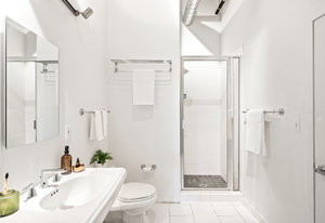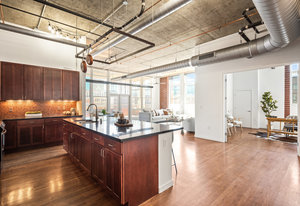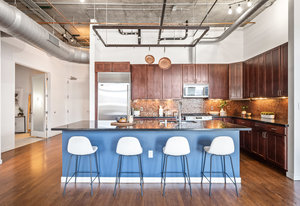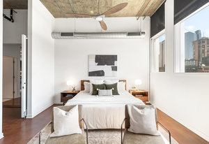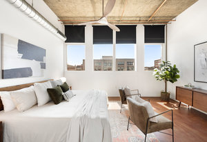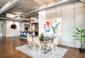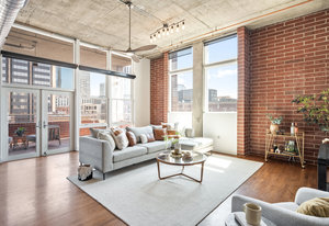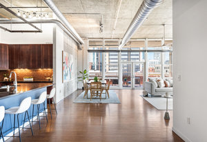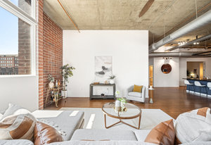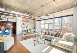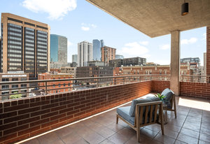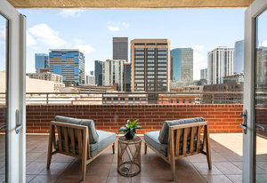 In a boutique building perfectly situated between Union Station, Coors Field, and the Milk Market, this 2,041-square-foot residence captures the essence of modern city living with architectural elegance and ease. Framed by panoramic city views, the home’s expansive layout is defined by soaring ceilings, exposed brick walls, and oversized windows that drench each space in natural light.