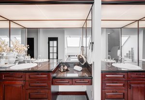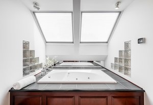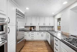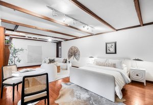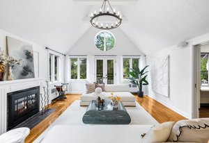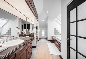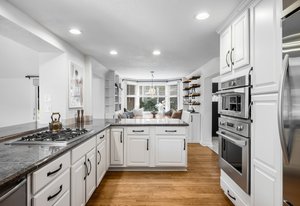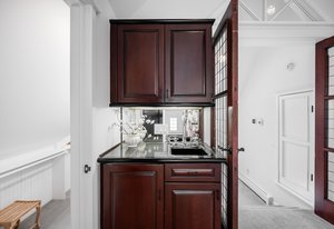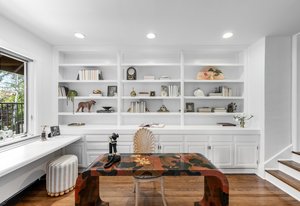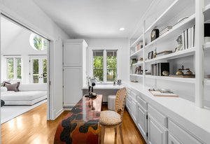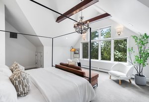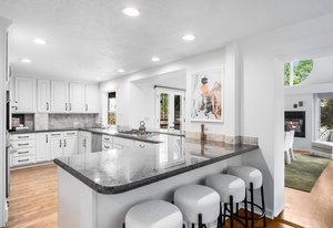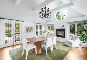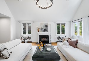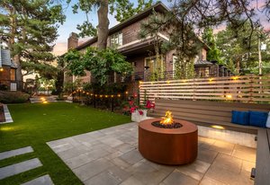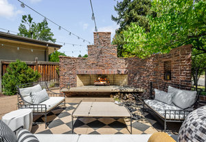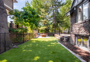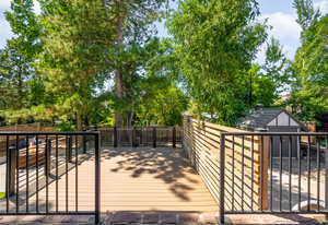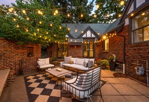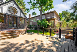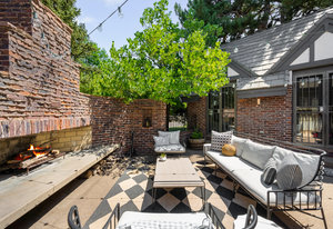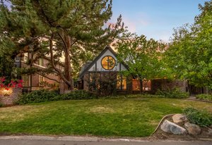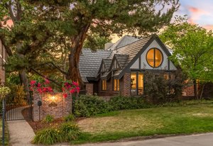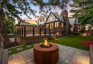 Nestled on a quiet block in Hilltop, this beautiful Tudor blends timeless 1940s architecture with thoughtful modern upgrades. Situated on an 8,125 sq. ft. lot, the home offers 4,355 sq. ft. of living space with 4 bedrooms, 3 bathrooms, and light-filled interiors designed for comfort & entertaining. Vaulted ceilings with striking wood beams, original design elements, multiple fireplaces, skylights with automated blinds, & Pella windows with pull-down screens create a warm ambiance. The gourmet kitchen features granite countertops, a large island, premium appliances, a breakfast nook, & a buffet serving station that opens to the dining room. The dining room boasts vaulted ceilings with beams, circular windows, & 2 sets of French doors opening to a private patio with a wood-burning fireplace, perfect for cozy evenings & Al Fresco dining. The enormous living room impresses with vaulted, beam-accented ceilings, circular window, & French doors opening to the backyard. An office is located just off the living room, offering a quiet workspace. The spacious primary suite boasts oversized windows, a generous cedar walk-in closet, a wet bar, & en suite. The walk-out basement offers exceptional versatility, including a private guest suite, ideal for an au pair or extended visitors, a bonus room that flows into a dedicated theater, and a laundry area. French doors throughout lead to all outdoor spaces for effortless indoor-outdoor living. The backyard features a brand-new Trex deck for grilling and summer dinners, a landscaped yard with mature trees, a lower area with gas firepit, built-in Trex bench seating, turf play area, sprinkler system, & utility shed. Additional highlights include an attached 2-car garage, private alley with electronic privacy gate, and phenomenal winter mountain views. Just a 2-minute walk to Cranmer Park, within the Steck Elementary & minutes from Cherry Creek’s dining, shopping, and parks—this home perfectly combines style, function, and location.