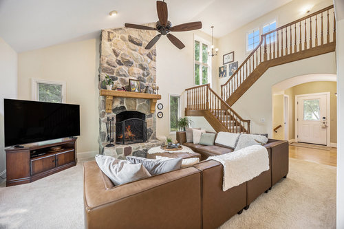 Experience timeless elegance in this exquisite French Country residence—a former Parade of Homes showcase that beautifully blends old-world craftsmanship with modern sophistication. Nestled within the prestigious Turnberry Estates and overlooking the 5th hole of Indianwood Golf Club’s New Course, this home radiates warmth, charm, and exceptional quality at every turn. From the moment you enter, architectural artistry takes center stage: arched and coved ceilings, rich hardwood floors, two striking stone fireplaces, and custom millwork that speak to thoughtful design and meticulous care. The refined study, framed by French doors and built-ins, offers an ideal space for working remotely or relaxing in quiet luxury. At the heart of the home, a chef’s kitchen and adjoining hearth room invite both grand entertaining and intimate gatherings. Sunlight pours through a wall of windows, while the dreamy screened-in porch provides the perfect retreat for unwinding. The main-level primary suite is a true sanctuary, complete with dual vanities, a soaking tub, glass-enclosed shower, and custom closet. Upstairs, you’ll find versatile living spaces including a second ensuite bedroom, two additional bedrooms sharing a full bath, a secondary laundry, and a charming office or study loft. The outdoor accessible lower level offers nearly 2,000 sq. ft. of impeccably finished space—featuring 9’ ceilings, a second kitchen, expansive family and game rooms, a full bath, ...