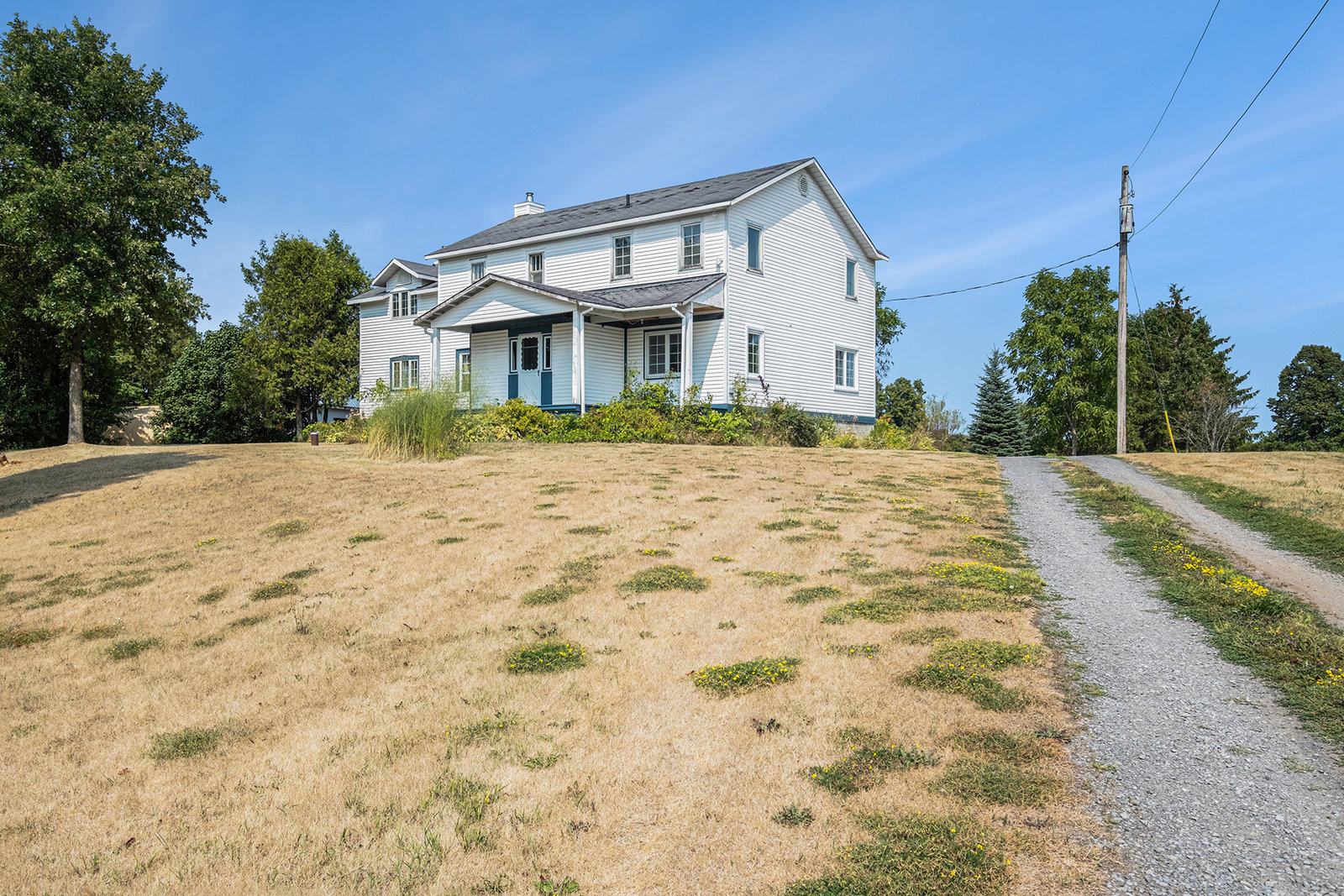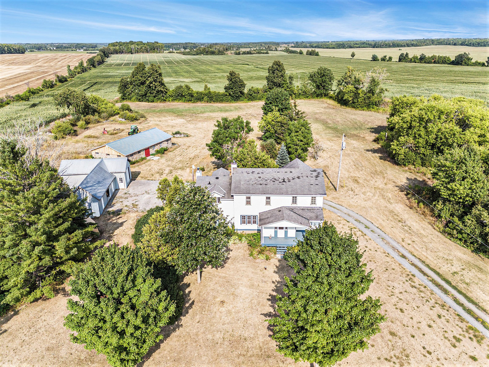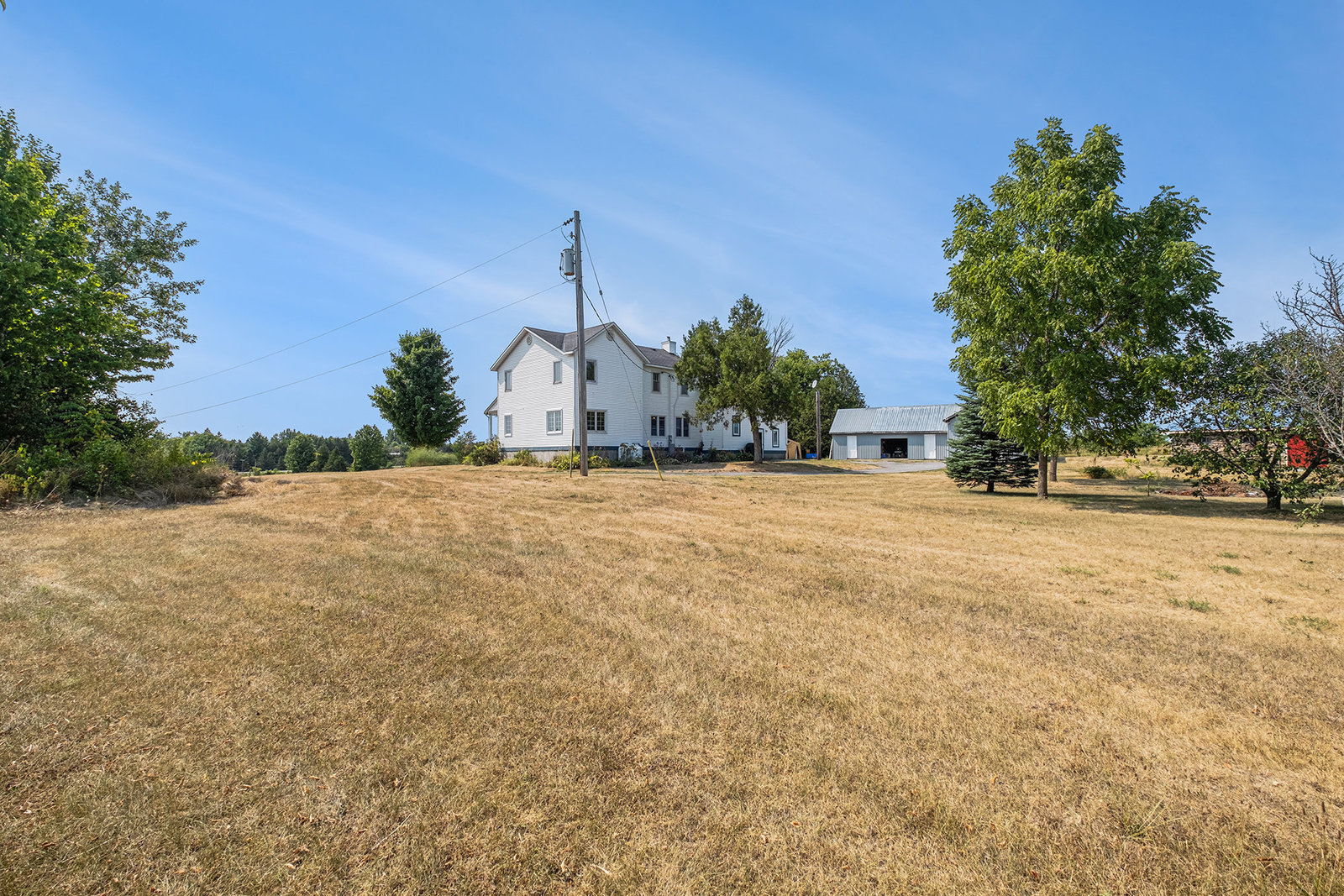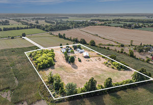Welcome to 6109 Fourth Line Road. Discover the charm and versatility of this rarely offered 4.94-acre hobby farm, meticulously maintained by the same family for over 50 years. Originally built in 1939, this inviting farmhouse has seen thoughtful updates, including two additions in the 1980s that expanded the kitchen, living room, and primary bedroom, creating a spacious and comfortable family home. Spanning over 2,400 square feet above grade, the residence features five bedrooms, including a primary suite with double closets and space for a seating area. The home offers two full bathrooms, a powder room, and a convenient main-floor laundry. The large country kitchen boasts a cozy WETT-certified wood-burning fireplace, while hardwood parquet floors run throughout the main level, complemented by a formal dining room and an additional living/family room ideal for a growing family or entertaining guests. An accessible attic off the third bedroom provides potential for conversion into extra living space. The expansive basement includes a finished area perfect for hobbies or relaxation, a cellar for storage, and a workshop. The property is generator-ready and heated with propane. Outside, you'll find a functional barn with a new metal roof and seven compartments, offering flexible uses for storage or animals. The oversized detached garage comfortably accommodates a large vehicle or small tractor, and three adjoining sheds provide ample space for equipment, wood, or other storage...