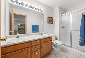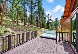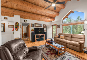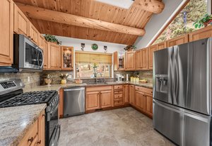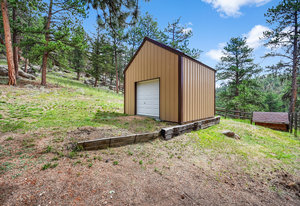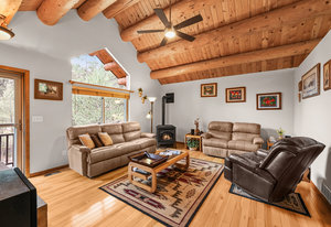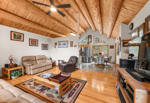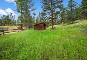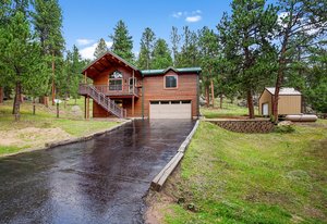 This mountain contemporary raised ranch home offers 3 bedrooms and 3 baths on 1.87 private, gently sloping acres with abundant wildlife. Featuring wood vaulted ceilings, hickory floors, a remodeled kitchen with granite counters, stainless Kenmore Elite appliances, hickory cabinets with slow-close drawers, a main floor primary suite with walk-in closet, a lower-level walk-out with additional living spaces and a 2-car garage. Additional amenities include a freshly stained exterior, newer metal roof, newer gutters and downspouts, newer windows, propane forced air heat, 2 pellet stoves, an attic fan, water softener, reverse osmosis water filtration, a composite deck with hot tub, outdoor camera system, a 13' x 12' metal storage shed, newer well pump, and a household-use well on A-2 zoned property with a loafing shed near the southern boundary of the property. This warm, light-filled house invites the outdoors in. Isn't this what comfortable, convenient Foothill living is all about?
