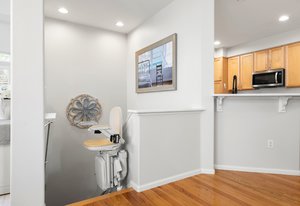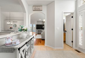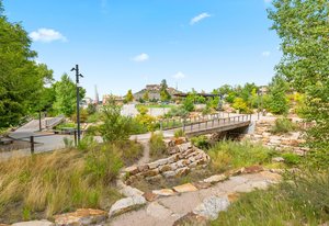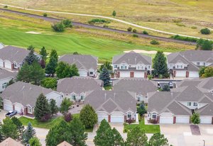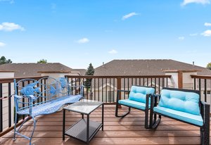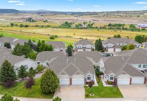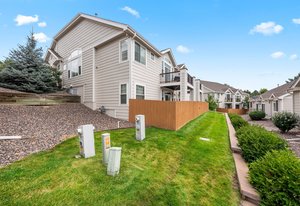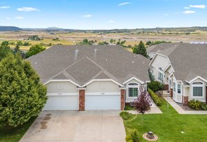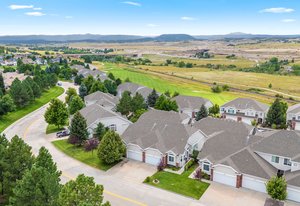 Discover low maintenance living in the heart of Plum Creek with this exceptional townhome featuring seamless main floor living. Flooded with natural light, this home boasts soaring vaulted ceilings and rich hardwood flooring throughout an open floor plan perfect for entertaining. The recently updated gourmet kitchen showcases 42” maple cabinets, high-end stainless-steel appliances, elegant quartz countertops, neutral backsplash, and an under mount sink. The main-floor primary suite serves as your personal retreat with cathedral ceilings, a private balcony offering mountain views, spa-like five-piece bathroom, in-suite stackable washer/dryer, and expansive walk-in closet with custom built-ins. The walk out lower level is easily accessed with a motorized stair chair and features a spacious family room, large laundry room, two guest suites, full bathroom, and abundant storage. Outside, enjoy your private fenced in patio with raised garden beds. This prime Castle Rock location puts you minutes from prestigious Plum Creek Golf Course, historic Downtown Castle Rock’s charming shops and restaurants, scenic Plum Creek Trail for walking and biking, plus endless retail and dining options. This rare combination main floor living, thoughtful updates, and coveted location creates an exceptional opportunity in one of Castle Rock’s most desirable communities. Handicap accessible features include a motorized stair chair and entrance ramp both stay with the home. The HOA covers maintenance of the exterior structure, front yard maintenance and irrigation and snow removal. Updates include newer Champion windows w/ comfort low E glass, Hunter Douglas plantation shutters and black out verta glide blind, furnace, A/C, hot water heater, new kitchen counters, tile floors and backsplash. The spacious study on the main floor could be converted to an additional bedroom. Enjoy mountain views off the primary balcony including views of the Devils Head “The Sleeping Indian”.