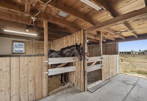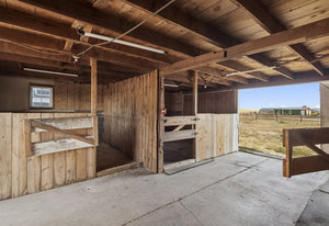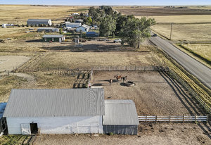 Welcome to your turnkey cattle ranch and hobby farm on 23 fully fenced and cross-fenced acres, zoned Agricultural Estate. Bring your animals, toys, and personal touch to this delightful ranch-style home with a finished attic. Inside, you'll love the spacious open kitchen, abundant natural light, and multiple cozy sitting areas. Step outside to enjoy the peaceful views from your front porch, screened-in back patio, or under the shade of mature trees on the lush lawn with automatic sprinklers. This property is fully set up for your farming or ranching needs with five outbuildings - all with electricity: 28' x 53' Workshop/Shop with 1-car garage (heated with natural gas) and plenty of space for projects. 21' x 60' Barn/Storage with 3 bays, concrete floor, grain storage, and full loft/attic for hay. 20' x 28' Chicken & Turkey House with lofted storage. 10' x 10' Old Well House (currently used for storage with water holding tank). 10' x 10' New Well House providing additional utility and storage. The property also includes a 4-stall barn, cattle/calving areas, and a large chicken coop. Just 2 minutes to Strasburg amenities. 30 minutes to Southlands shopping. 30 minutes to DIA. 45 minutes to downtown Denver. This rare opportunity combines peaceful country living with easy access to city conveniences. Pastures have been actively managed with a rotational grazing plan and annual weed control program, ensuring healthy forage and compliance with Colorado noxious weed requirements. Don't miss your chance to own this versatile 23-acre estate with everything you need to start or expand your ranching lifestyle!