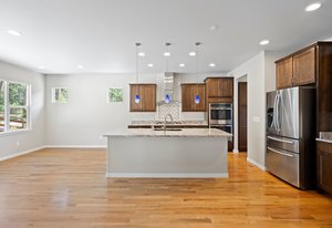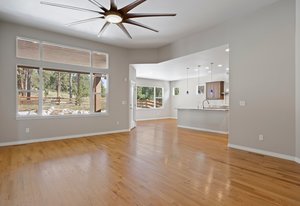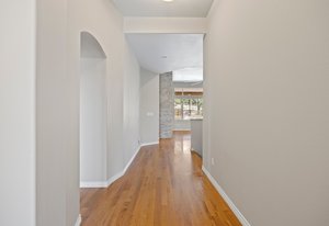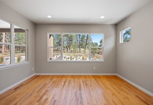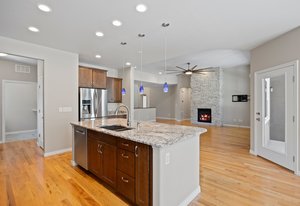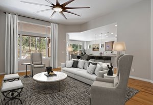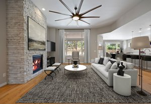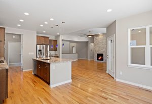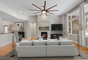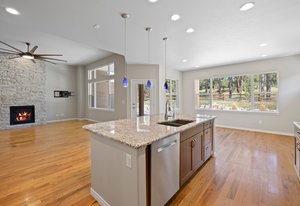 This stunning property blends luxury, comfort, and the beauty of the outdoors. At the heart of the home is a chef’s kitchen with double ovens, a stainless-steel hood vent, a 36" gas cooktop, rich granite countertops, water filtration system and upgraded cabinetry —The side butler’s area includes a large pantry, beautiful cabinets and an ideal coffee bar space. Perfect for both everyday meals and entertaining. Forest views from this part of the home never get old. The kitchen flows seamlessly into the family room that is perfectly designed with hardwood floors, incredible ceiling fan, gas fireplace and floor outlets. The stone wall is fully braced and ready for your custom mantle, allowing you to add your personal touch.