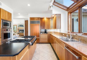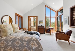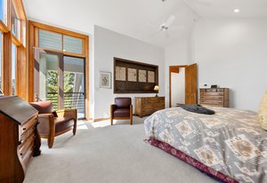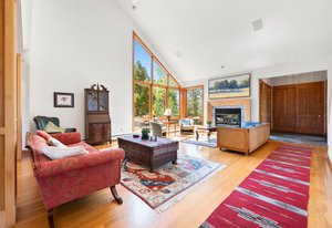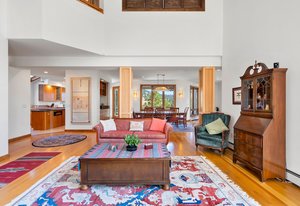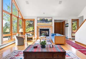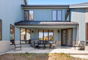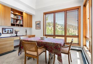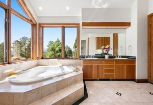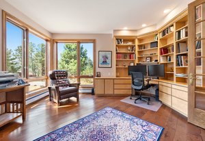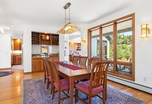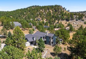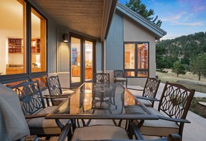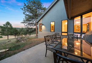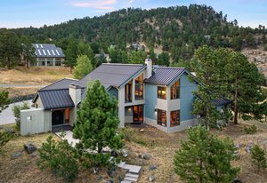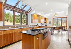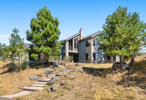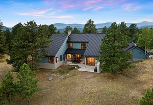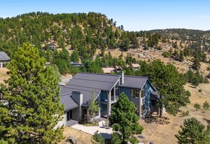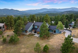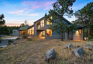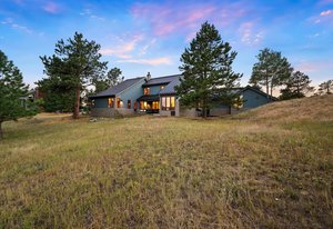 Adjoining a 10 acre meadow of dedicated Genesee open space, this Sears Barrett architectural designed custom home stands the test of time with classic lines and an enduring open floor plan. Quality finishes of custom cherry cabinetry with maple trim; hickory, oak, limestone, slate and marble flooring; hand-finished moldings; solid 8' oak doors; triple pane skylights; lit art niches; LED and dimmer lighting throughout; metal roof plus high end appliances combine to present a beautiful living environment that is excellent for entertaining and for private relaxing time. Slate foyer is accessed from both the garage side and the expansive southwest mountain view patio side of the home. This unique entrance allows abundant guest parking on the Bristlecone cul-de-sac. Concrete driveway has full sun and is lined with a rock wall. Vaulted great room, enhanced by a solid cherry surround gas fireplace, is filled with natural light from its towering wall of windows. Formal dining room has built-in cherry buffet, mission style sconces and chandelier plus wet bar with pass-through to the 2006 remodeled Kitchen that features skylights, custom cherry cabinets, Sub-Zero, Wolf & Asko appliances, limestone flooring, bar area, breakfast nook & atrium door opening to covered patio with meadow and mountain views. Main level office features 5" solid hickory floors & two work stations each with built-in shelving. Ideal as a Mother-in-law suite, large main level bedroom has lovely natural light, hickory floors, double closet & a remodeled full bath with walk-in tub. Powder bath & laundry complete the main level. Upstairs is the 200 s.f. primary suite with mountain view deck, big bright 5-piece bath plus his/her walk-in closets. 2nd upstairs bedroom has its own full bath, walk-in closet & bonus room access. 10' 3" ceiling in the unfinished basement makes it great space for your personal finishes. Enjoy walking distance to trails and to the Foothills Club House with gym and Olympic size pool.