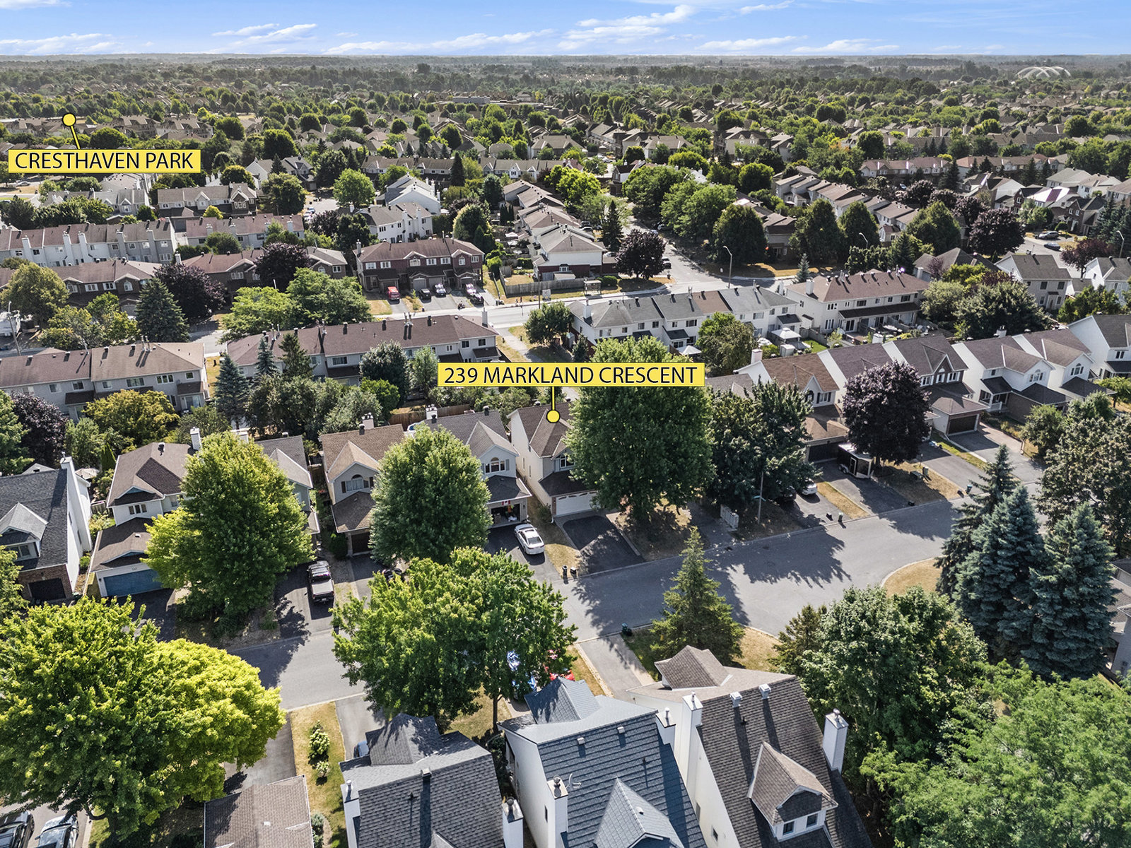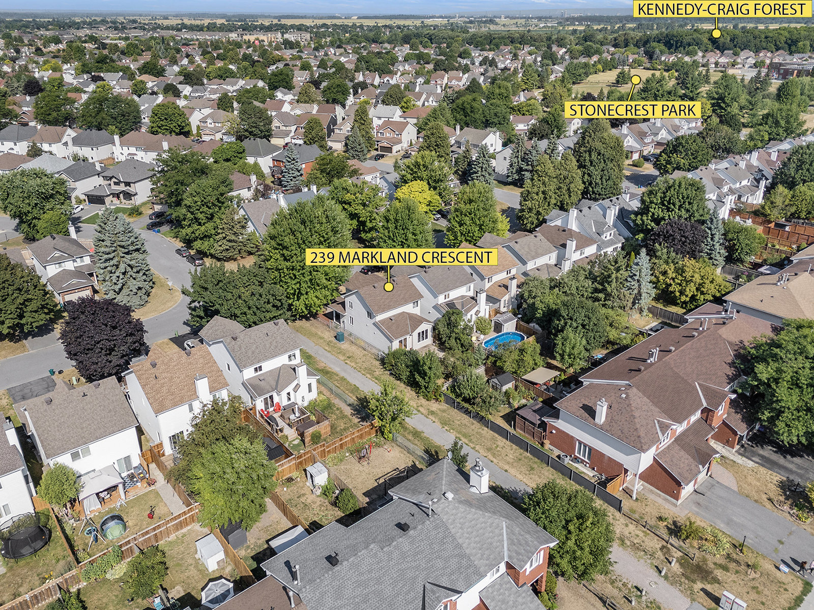 Welcome to 239 Markland Crescent, a beautifully maintained, detached 2-storey home nestled on a quiet street in a highly desirable area. Built in 1996, this spacious residence offers approximately 1900 sqft of above-grade living space, perfect for families seeking comfort and convenience. Enjoy the ease of walking to nearby amenities, including Farm Boy, Stonecrest Park, Chapman Mill Park, the Southpointe Community Building, and Kennedy-Craig Forest. The property is situated beside a scenic walking path, providing serene views and outdoor activity opportunities right outside your door. Step onto the covered front entry and be welcomed into an open, sunlit layout featuring a main floor living room and dining area with hardwood flooring, perfect for relaxing or entertaining guests. The eat-in kitchen boasts granite countertops, tile backsplash, a wall pantry and easy access through patio doors to a private, fully landscaped backyard with a deck ideal for outdoor gatherings. The spacious primary bedroom showcases a vaulted ceiling, generous walk-in closet and a luxurious 4pc ensuite bathroom. Two additional bedrooms on the second floor are generously sized along with a convenient 2nd floor laundry room. The main floor also includes a cozy family room with a gas fireplace, creating a warm and inviting atmosphere. The paved driveway with an interlock border leads to a 2-car garage, complemented by a fully fenced, 108ft deep lot providing plenty of outdoor space. The unfinished basement ...