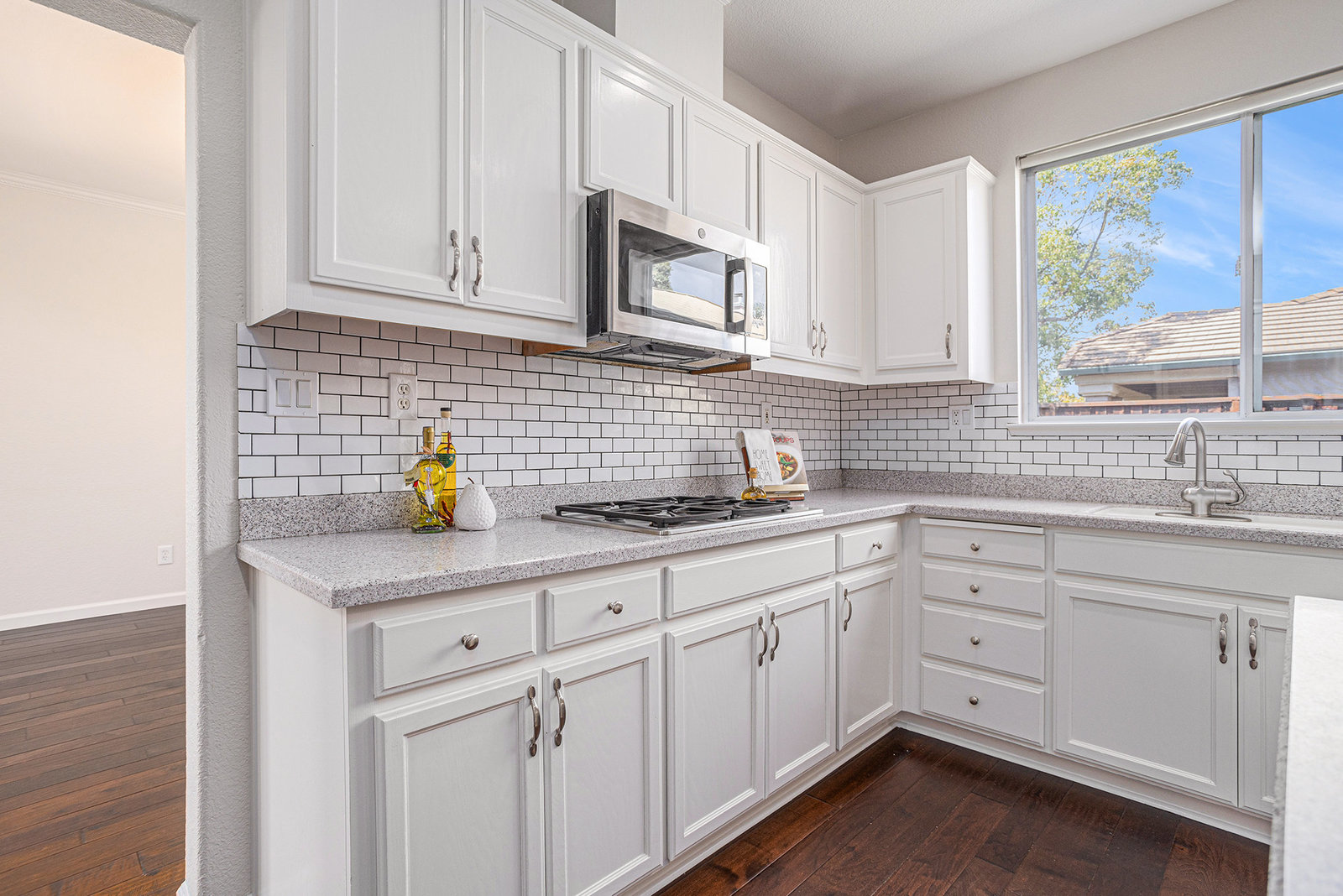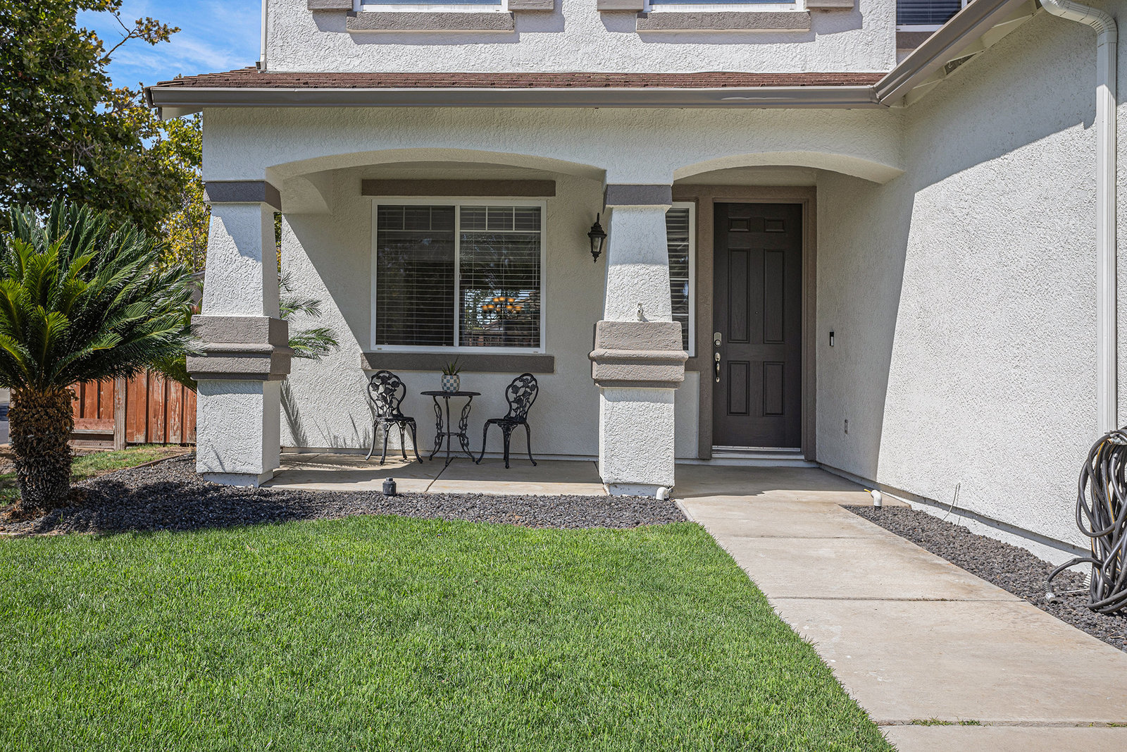 From the moment you arrive, the home’s freshly painted exterior, stone pillars - Durango by Mountain Ledge , tile roof, and exterior light fixtures make a lasting impression. The covered front patio adds a welcoming touch, while lush, fully landscaped front and backyard, is equipped with automatic sprinklers, create a private, minimalist retreat.