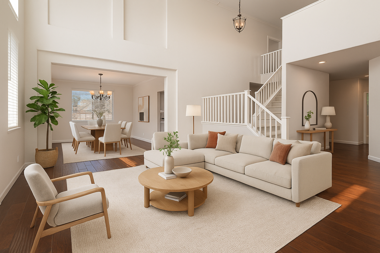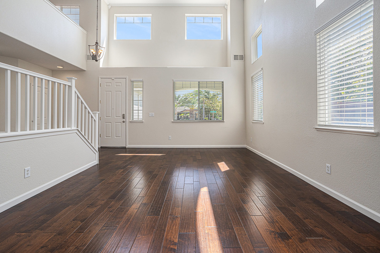 Inside, the home opens up to a spacious, and flowing open floor plan with soaring high ceilings, new interior paint, and high-end engineer hand-scraped hardwood flooring that is highlighted with an abundant amount of natural lighting. The layout features a lower-level circular flow, ideal for entertaining and everyday living, centered around a double-sided staircase that adds architectural elegance and effortless access between spaces.