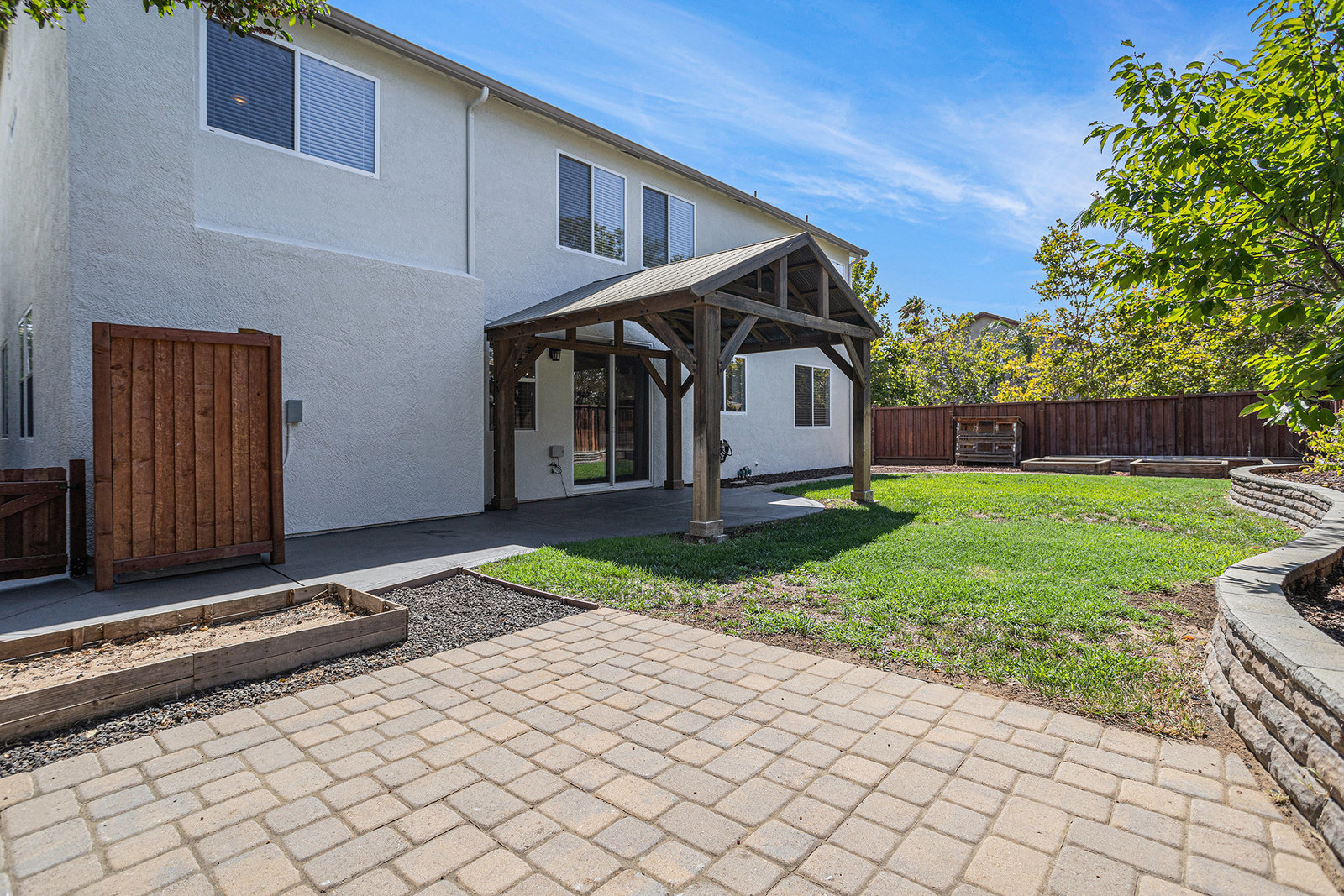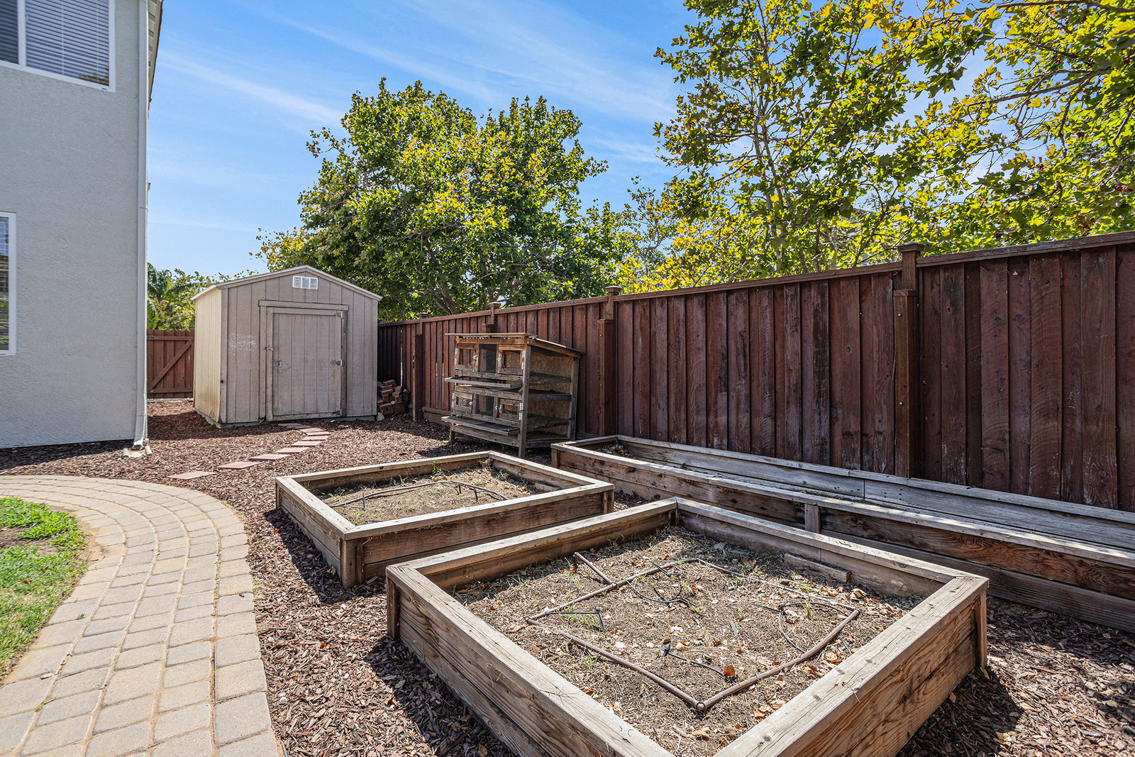 In the backyard, you’ll find a thoughtfully designed outdoor living space with a pavilion-covered porch, walkway pavers, a stone retaining wall, raised garden bed, and a wood shed for added storage. Side yard access provides convenient space for possible fishing boat, bikes, or water toys.