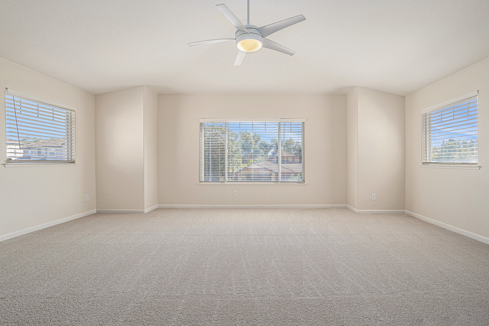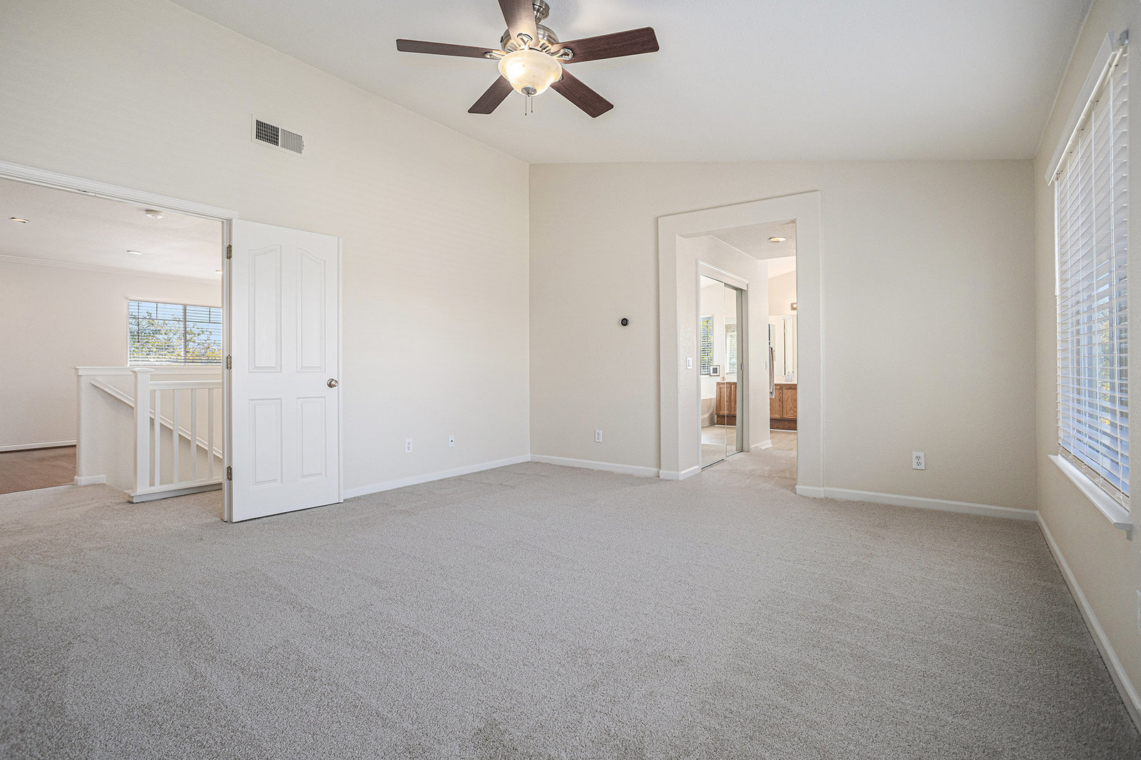 Upstairs, this home offers incredible flexibility with a bonus room (optional 5th bedroom) featuring a peek-a-boo view of Mt. Diablo, and an open loft that can easily serve as a 6th bedroom, home office, or game room. Each bedroom is generously sized, complete with closet organizers and ceiling fans. While some closets feature mirrored sliding doors and spacious walk-in layouts, all are thoughtfully designed with built-in organization. The primary suite bathroom offers a relaxing retreat with a frameless glass shower, tile surround, garden soaking tub, and a double vanity with ample storage cabinet space. The secondary bathrooms are ideal for a growing household, featuring a shower-over-tub with tile surround and plenty of room to accommodate busy mornings or multiple users.