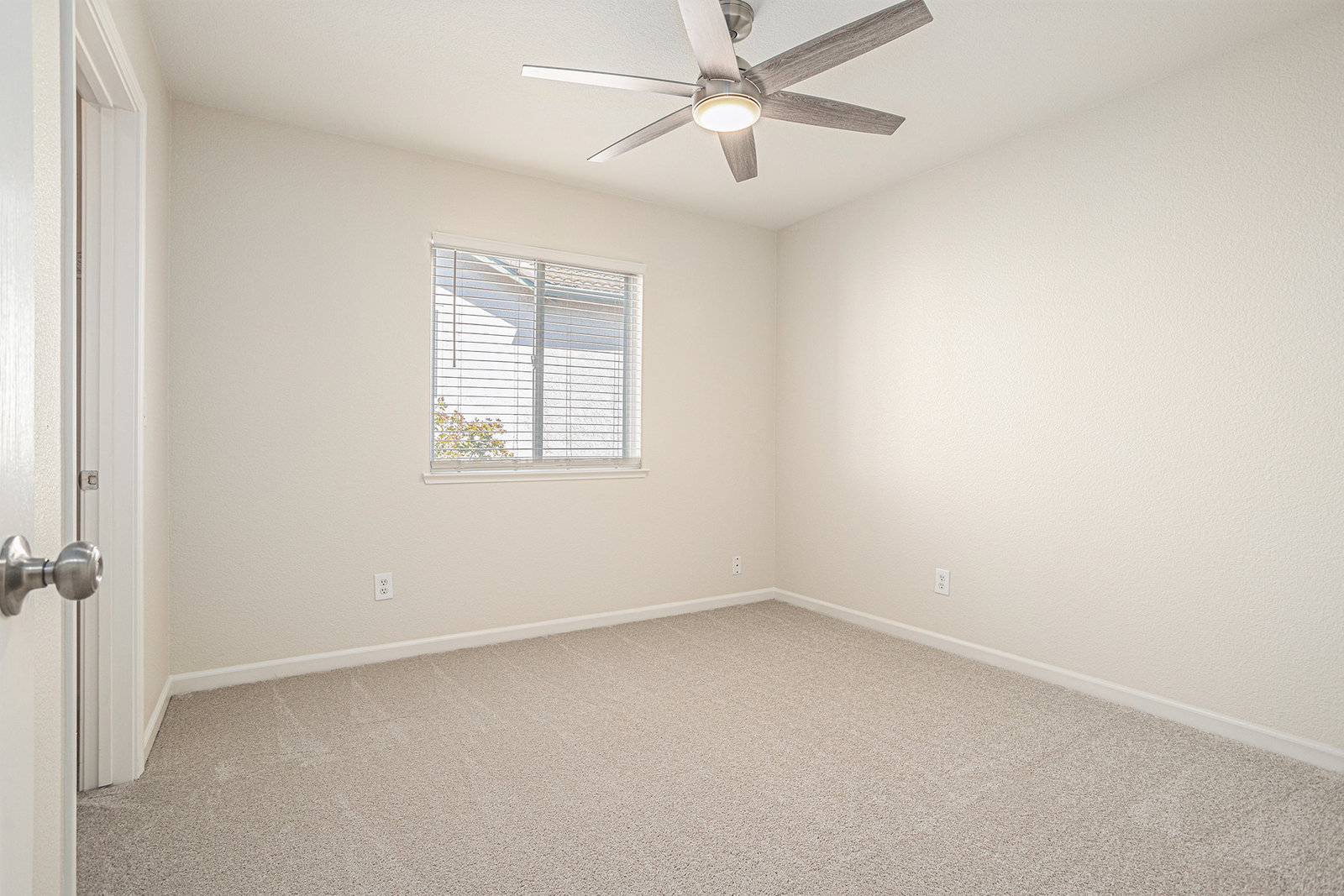Additional features include new plush carpet in Lace color, vinyl blinds throughout, a well-appointed laundry room with upper cabinets, and new nickel-brushed interior door knobs throughout. Climate control is handled by a dual-zone HVAC system, a newer AC unit, and a smart thermostat, ensuring year-round comfort and efficiency.