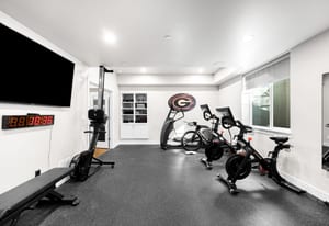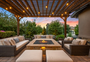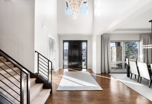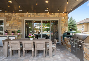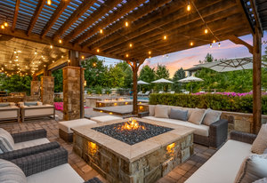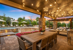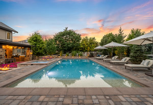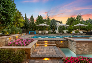 Step into this luxurious custom home with resort-style amenities and thoughtful upgrades throughout. The main floor features a living room with surround sound, custom built-ins, and fire ribbon fireplace, plus automatic shades on large sliding doors to the patio. The Chef’s kitchen offers Thermador appliances, 6-burner gas range with griddle, double ovens, microwave, dishwasher, walk-in pantry, and butler’s pantry with wine cooler, complemented by a kitchen nook and formal dining. Main level also includes a private office, mudroom with custom built-ins, laundry with utility sink, powder room, and guest suite with en-suite bath and French doors. Upstairs, the primary suite provides dual vanities, walk-in California Closets, automatic shades, and a spa-like en-suite bath. Additional bedrooms include two that share a Jack-and-Jill bath and one with its own en-suite, all featuring walk-in closets and custom drapery, plus flexible office spaces. The finished basement (Jan 2020) includes a climate-controlled and humidified wine vault, bar with ice maker and beverage refrigerators, living/game areas, exercise room or bedroom, bathroom, and Kentucky barn wood accents. Engineered hardwoods, gym flooring, and surround sound complete the space. Outdoor living impresses with professional landscaping, pergola, fire pit and fire ribbon, saline pool and spa with three waterfalls, custom pool covers (2), outdoor kitchen with Lynx grill, Big Green Egg, dual beverage refrigerators, TV, speakers, Restoration Hardware umbrella, seating for 32, and K9 turf area. Recent upgrades: new driveway (2025), upgraded carpet (2024), and custom window treatments/automated shades throughout. Additional features: fire suppression throughout home, Savant AV, outdoor Lutron lighting, upgraded Restoration Hardware lighting, smart front door, Nest thermostats, indoor/outdoor cameras with ADT, UV air purification, whole-home humidifiers, and epoxy garage flooring with cabinetry.