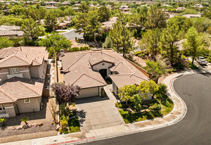 Welcome to "The Rhapsody". This is a one-of-a-kind 4-bedroom Rhapsody floorplan. Situated on a private cul-de-sac with no neighbors to the right. The custom-upgraded kitchen is a chef’s dream. Premium stainless steel appliances, a quartzite waterfall island, European cabinetry, and designer finishes. Soaring 10-foot ceilings and abundant natural light. Wired with amazing sound throughout the home. The primary suite delivers a stylish touch, with a soaking tub, glass-walled shower, and dual vanities. The other bedrooms provide flexibility for family, guests, or a home office. Enjoy Anthem’s world-class amenities: championship golf, tennis, fitness center, and fine dining. This rare, upgraded gem redefines desert elegance in a community that delivers lifestyle, peace of mind, and exclusivity.