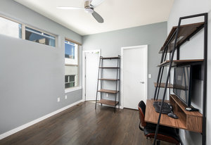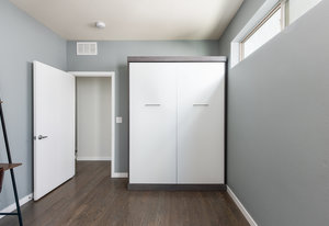 Upstairs, the primary bedroom (with plenty of room for a king sized bed!) features an expansive bathroom with dual sinks, an oversized walk in closet, and private water closet. The second bedroom also features an en-suite bathroom, and the murphy bed makes it the PERFECT guest suite and/or home office. Note: the seller would be happy to remove the murphy bed if it isn't needed. You will also love having the laundry room on the same floor as the bedrooms - no more lugging your clothes up multiple flights of stairs!