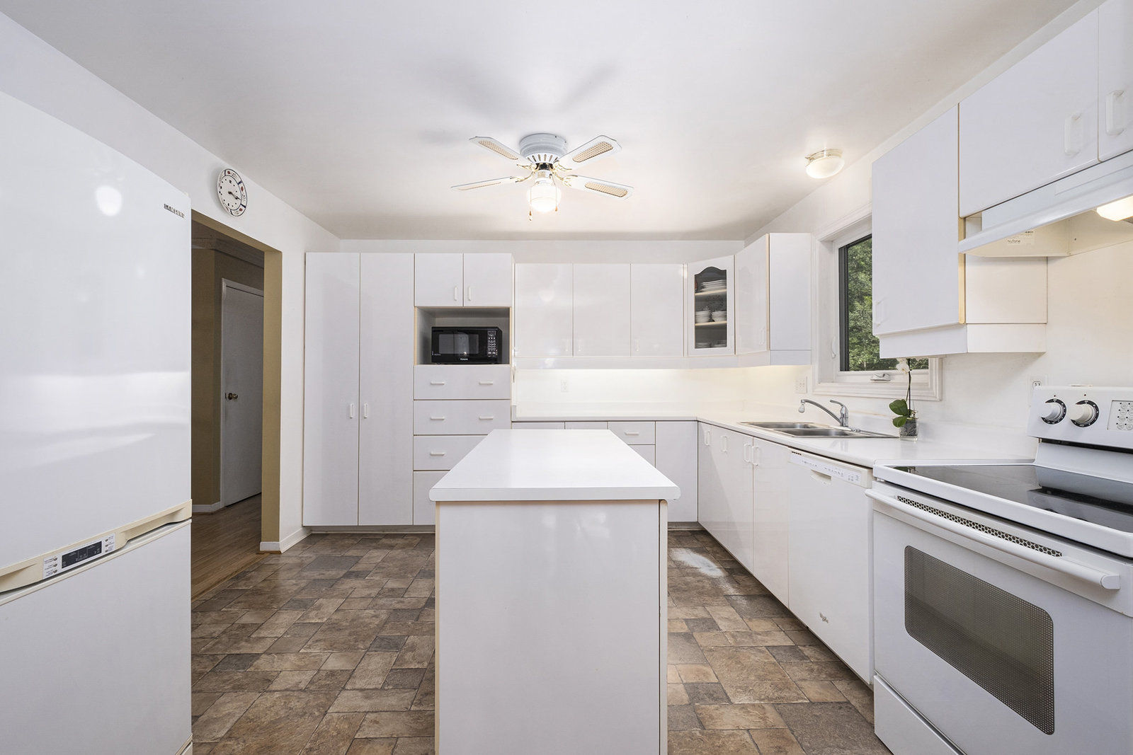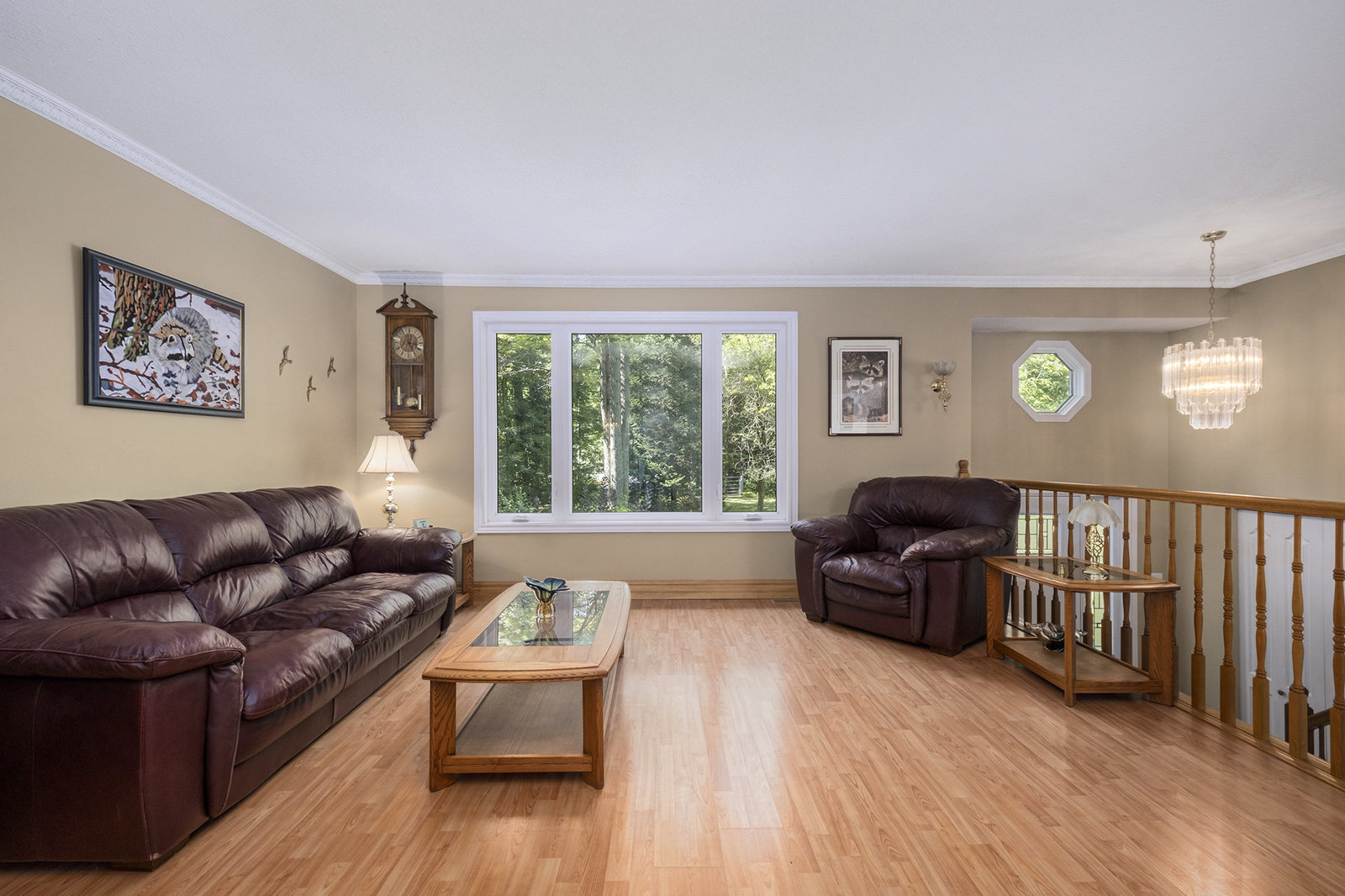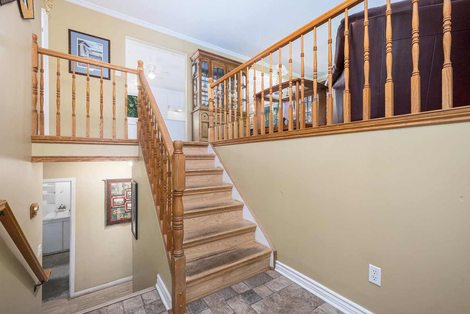 Inside, the spacious main floor offers three well-sized bedrooms, ideal for families or anyone seeking additional space. The open-concept kitchen is a highlight, seamlessly connecting to a formal dining area—perfect for hosting dinners or family gatherings. Large windows flood the interior with natural light, creating a warm and welcoming atmosphere. Step outside through the patio door onto a raised deck, an ideal spot for relaxing mornings, outdoor entertaining, or enjoying views of the peaceful backyard, which provides plenty of space for children, pets, or gardening.