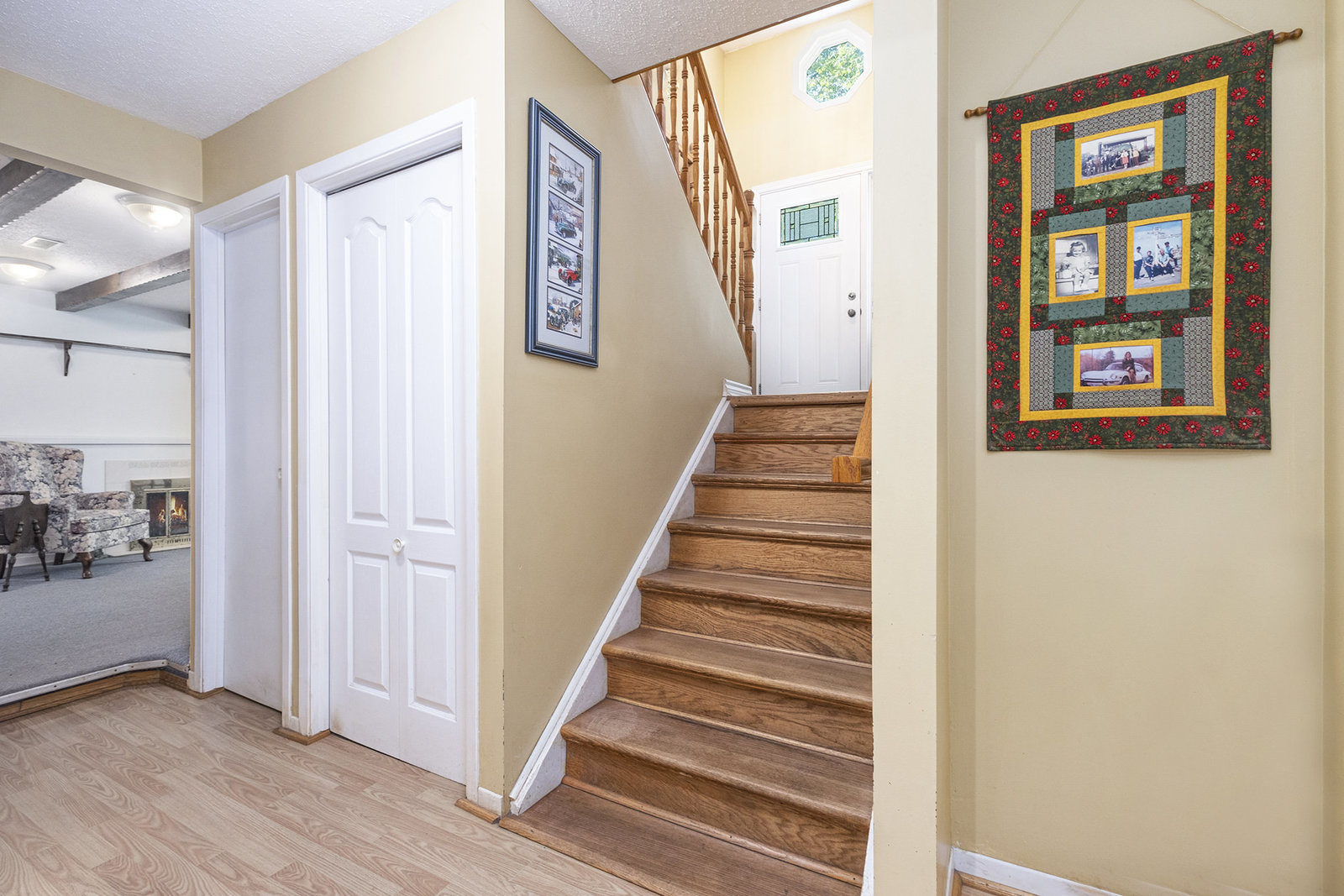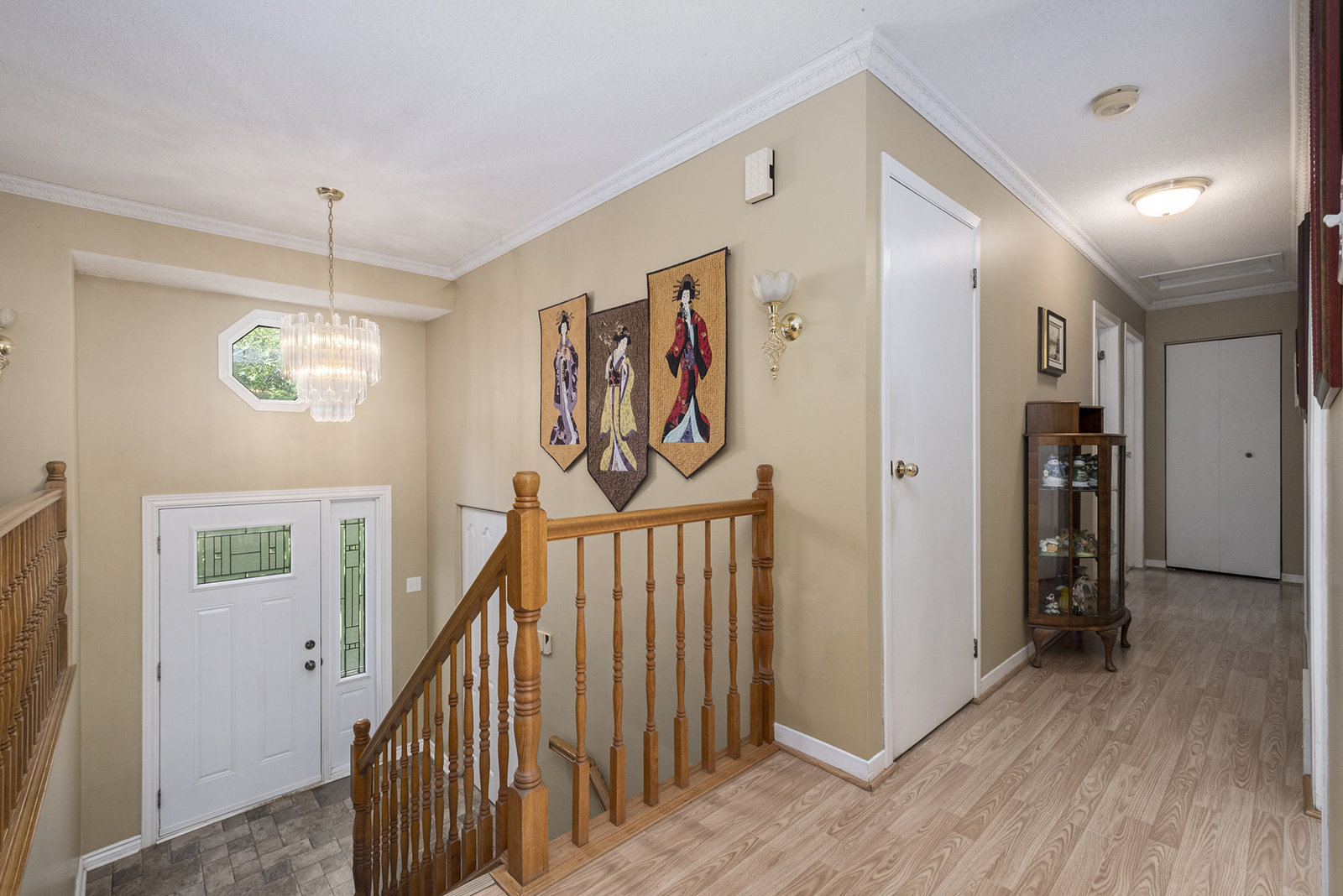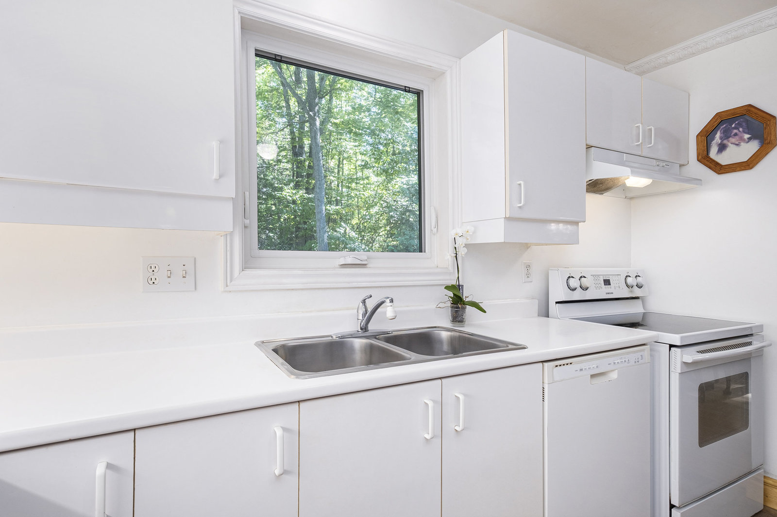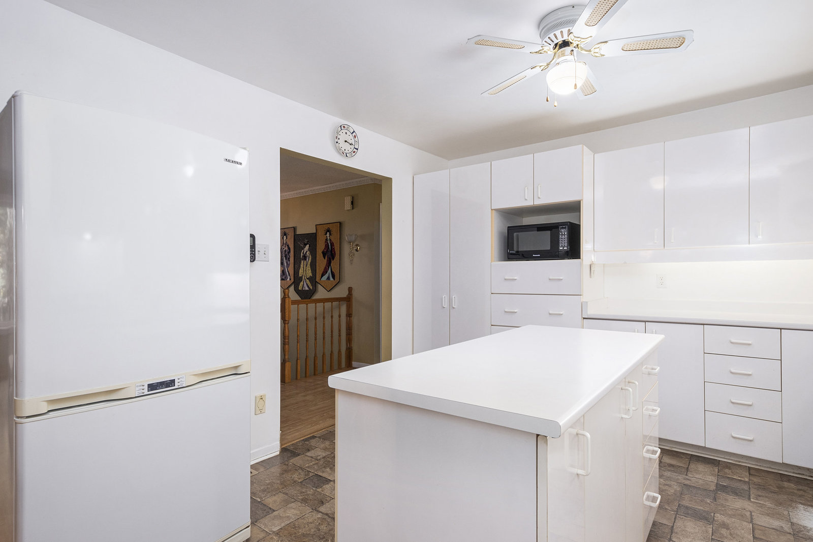 Inside, the spacious main floor offers three well-sized bedrooms, ideal for families or anyone seeking additional space. The open-concept kitchen is a highlight, seamlessly connecting to a formal dining area—perfect for hosting dinners or family gatherings. Large windows flood the interior with natural light, creating a warm and welcoming atmosphere. Step outside through the patio door onto a raised deck, an ideal spot for relaxing mornings, outdoor entertaining, or enjoying views of the peaceful backyard, which provides plenty of space for children, pets, or gardening.