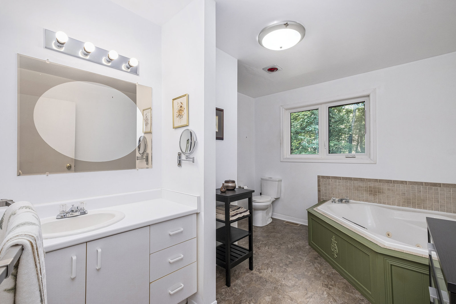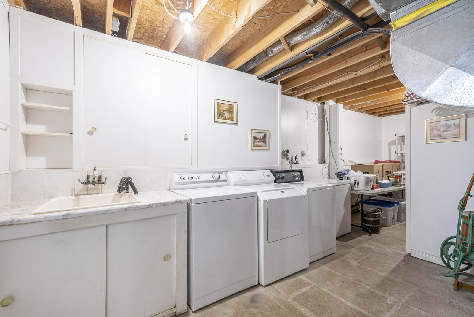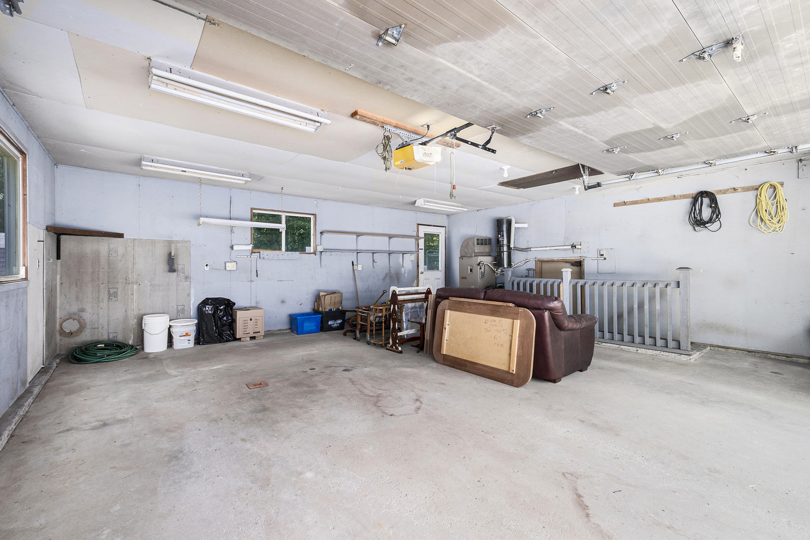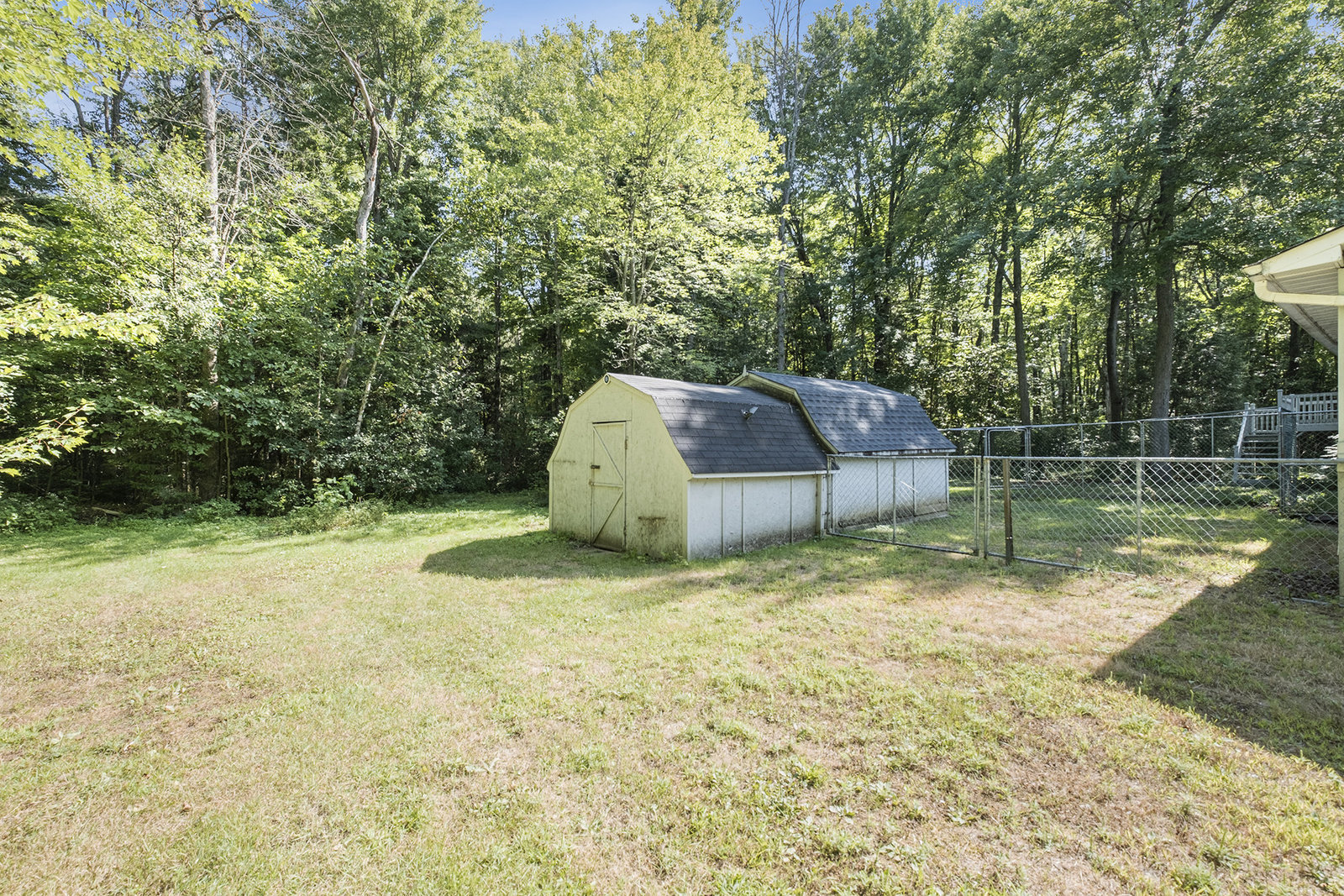 Additional features include a fenced-in area designed as a dog run, offering a secure space for pets to play freely. Two sizable storage sheds provide ample space for tools, equipment, or seasonal items. The property’s roundabout driveway ensures convenient, easy access and smooth traffic flow. The exterior combines...