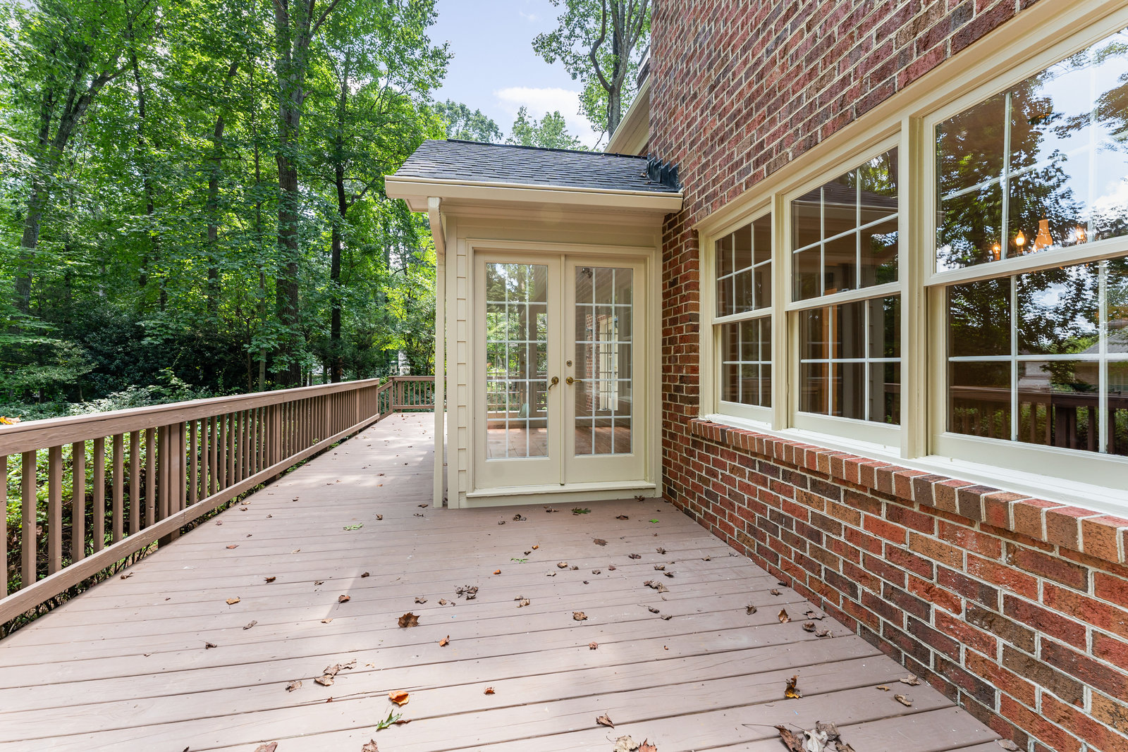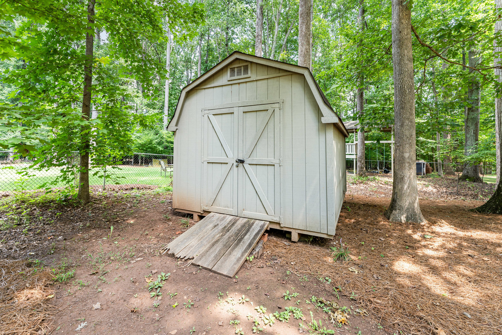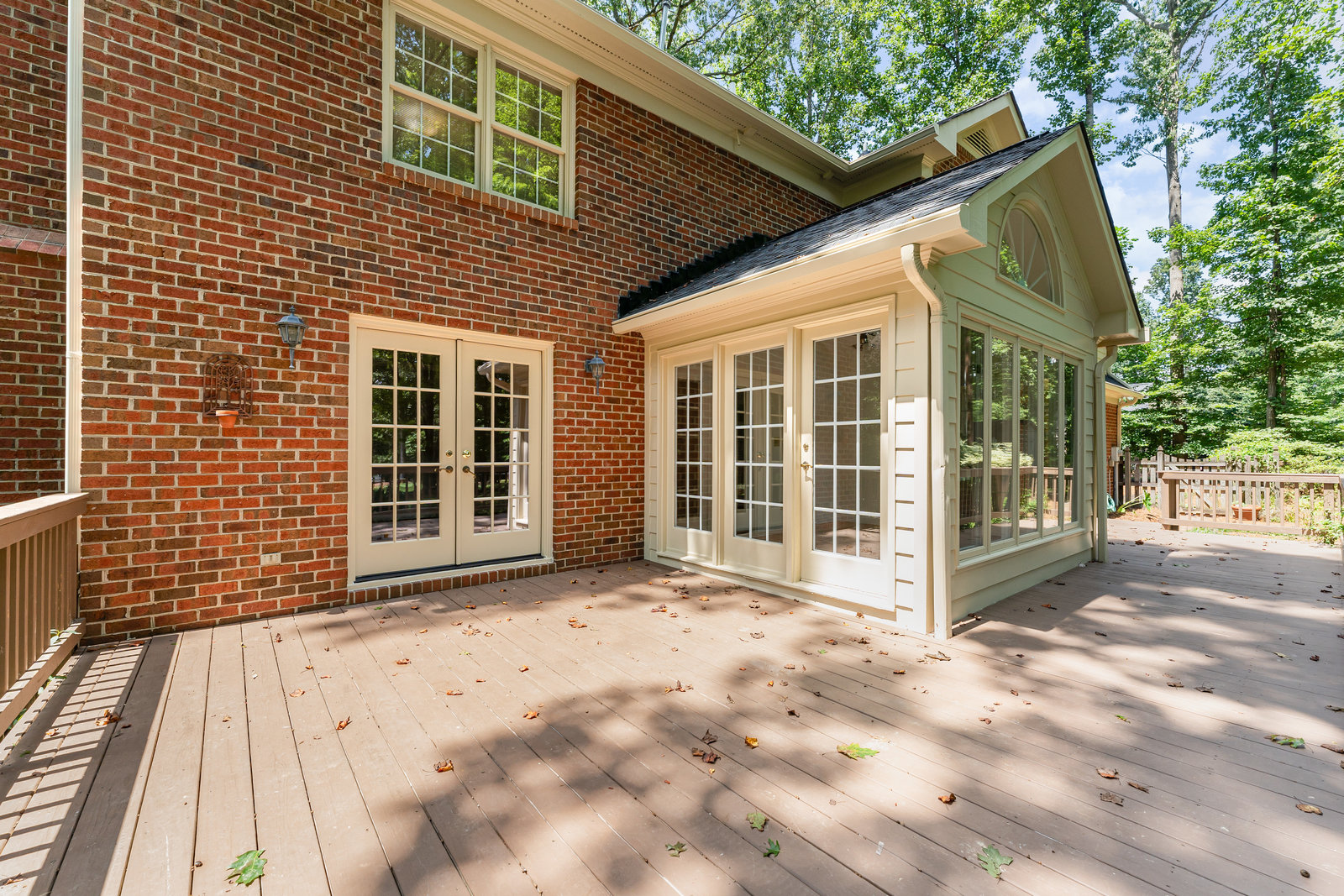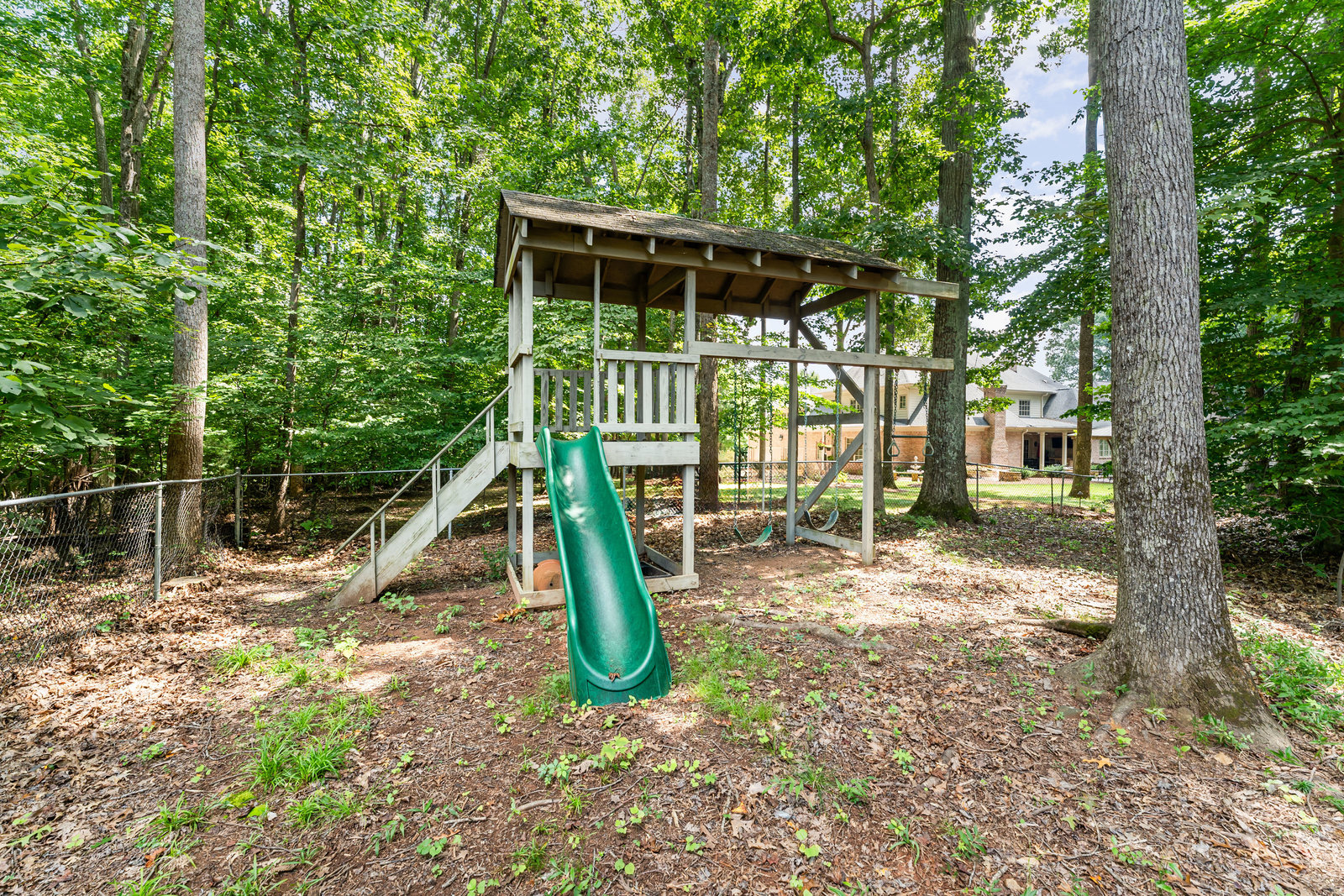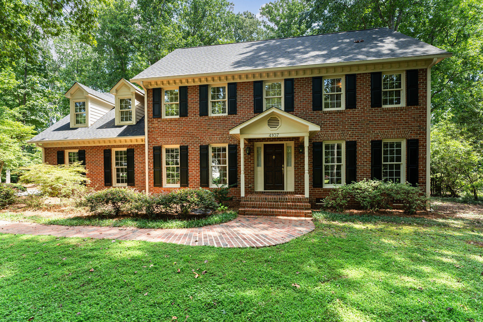 Stunning traditional brick home available in Sedgefield! Classic curb appeal set back deeply from the road on a large lot situated conveniently between Sedgefield Country Club, Grandover Resort & Spa, and Grandover Swim & Racquet Club. This traditional floor plan has well-appointed living spaces on the main floor with generously sized bedrooms and a playroom on the second floor. Primary suite enjoys two walk-in closets and a large en-suite bathroom. The spacious playroom currently connects to the primary suite but was originally separated by a wall and has its own staircase to the main floor. Side-entry 2-car attached garage provides convenience while maintaining the classic curb appeal. Storage room in the garage. Kitchen, breakfast nook, den, and sunroom all enjoy abundant natural light along the back of the house, connecting to a deck. Large backyard includes a shed, playset, natural areas, vine-covered pergola, and open lawn area. Large attic for additional storage. Roof 2022.