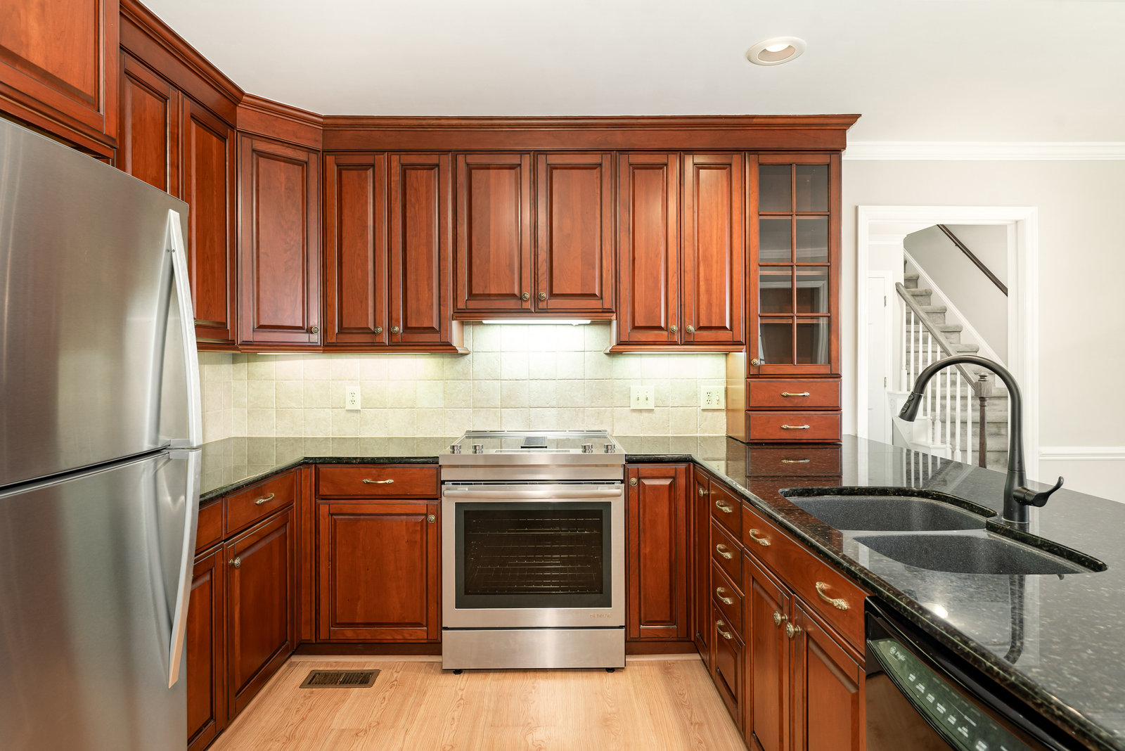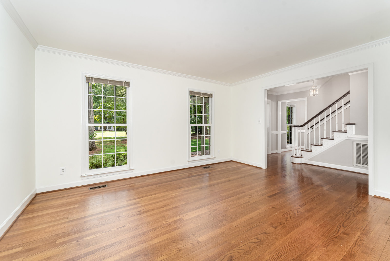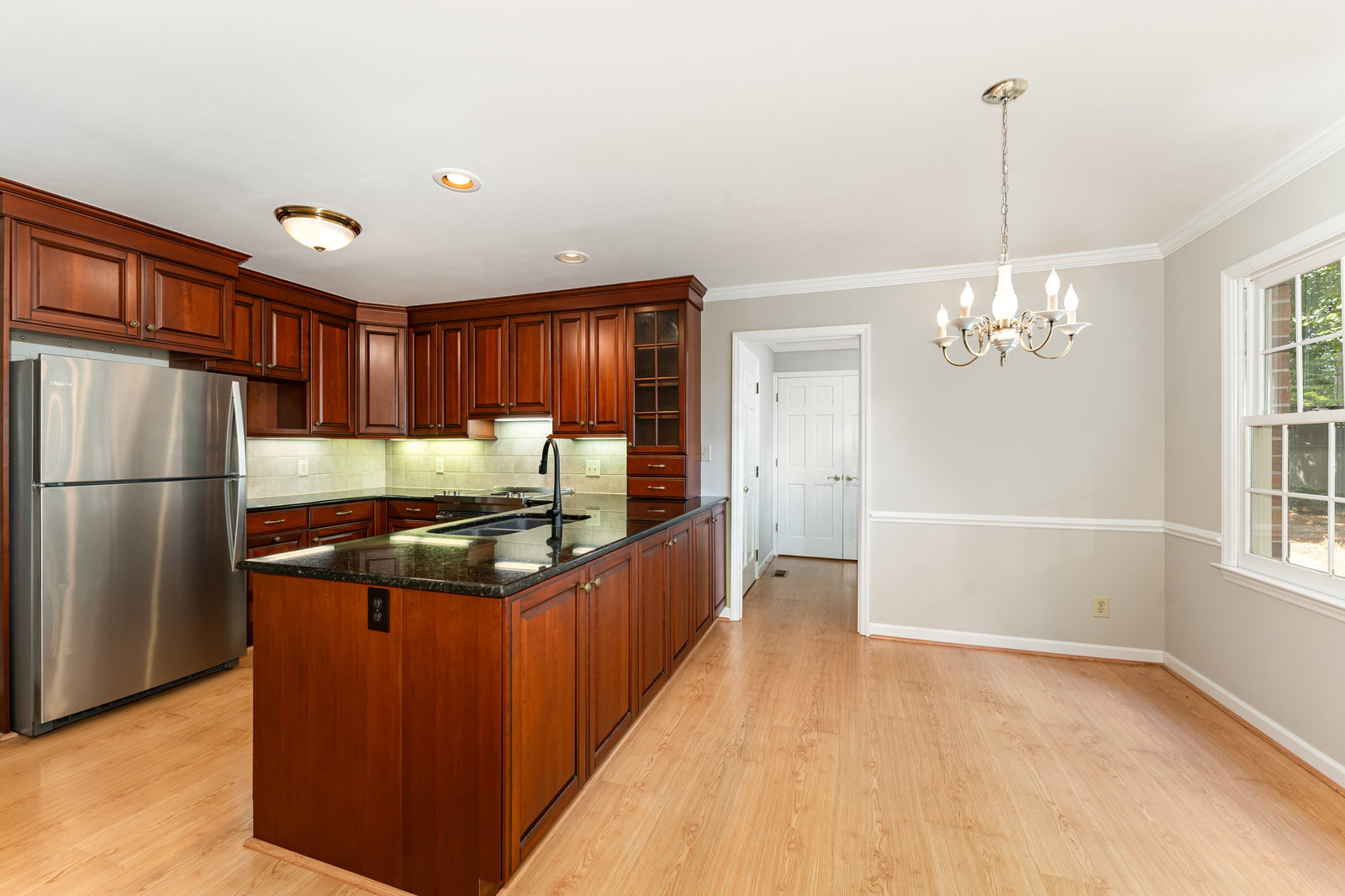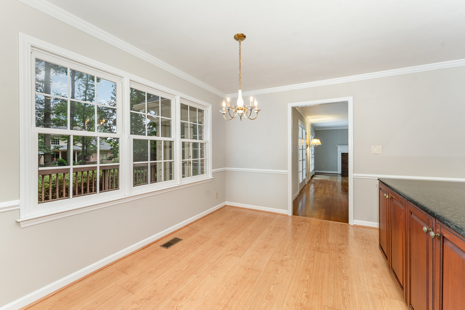Stunning traditional brick home available in Sedgefield! Classic curb appeal set back deeply from the road on a large lot situated conveniently between Sedgefield Country Club, Grandover Resort & Spa, and Grandover Swim & Racquet Club. This traditional floor plan has well-appointed living spaces on the main floor with generously sized bedrooms and a playroom on the second floor. Primary suite enjoys two walk-in closets and a large en-suite bathroom. The spacious playroom currently connects to the primary suite but was originally separated by a wall and has its own staircase to the main floor. Side-entry 2-car attached garage provides convenience while maintaining the classic curb appeal. Storage room in the garage. Kitchen, breakfast nook, den, and sunroom all enjoy abundant natural light along the back of the house, connecting to a deck. Large backyard includes a shed, playset, natural areas, vine-covered pergola, and open lawn area. Large attic for additional storage. Roof 2022.