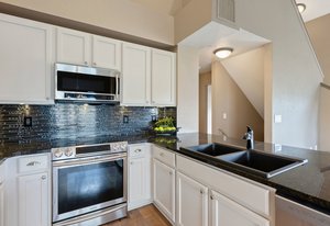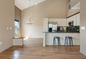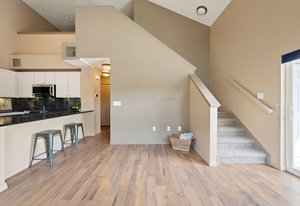 Stylish, spacious, and move-in ready— this Highlands at Stonegate condo is a cut above the rest. With soaring two-story ceilings and quality upgrades throughout, this generously sized 1-bedroom + loft lives large and lives beautifully. The main level features highly upgraded wood-style flooring and an open layout that flows from the spacious living area to a dedicated dining space and modern kitchen. The impressive kitchen includes slab granite countertops, a convenient eat-up breakfast bar, upgraded cabinetry and sink, and quality stainless steel appliances— making this kitchen both functional and refined. The vaulted and generously proportioned primary suite is a highlight, offering a large walk-in closet and easy access to the beautifully updated full bathroom. Thoughtfully designed, the bath features a double vanity with granite countertops, upgraded sinks and lighting, a convenient linen closet, and a custom glass shower/ tub enclosure. Upstairs, the versatile loft is ready to serve your lifestyle needs—perfect for a guest retreat, home office, creative studio, or workout area. A private 2nd floor balcony offers fresh air and extra storage, thanks to a large walk-in closet—perfect for your gear or seasonal items. Additional perks include an in-unit washer and dryer, built in audio system, a well-located reserved parking space right out your front door, and access to the community’s pools, tennis courts, trails, and green spaces. Ideally located with easy access to E-470, shopping, dining, and everyday essentials, this move-in ready condo in a well-maintained community is a great opportunity to own in a close-in Parker neighborhood at a great value