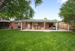 This beautifully updated brick ranch blends timeless charm with modern convenience in the heart of Virginia Village. Step inside to find original hardwood floors and a bright, open layout that seamlessly connects the living room, dining area, and kitchen. The modern kitchen features quartzite countertops, updated lighting, and an airy open floor plan perfect for entertaining. The main level offers a private primary suite with a newly updated bathroom featuring marble floors, plus two additional bedrooms and a refreshed hallway bath. Downstairs, the spacious basement includes a great living room, a large bar area, a bath, and even a hidden workshop—ideal for hobbies or extra storage. Outdoor living is just as impressive, with an expansive yard, outdoor kitchen set-up complete with direct gas line hook-up and fridge connection, chicken-coop and two storage sheds for all your gear. Fully paid-off solar panels keep utility bills low and efficiency high. Enjoy the perfect blend of tranquility and convenience with easy access to I-25, light rail, parks, restaurants, and shopping.