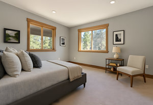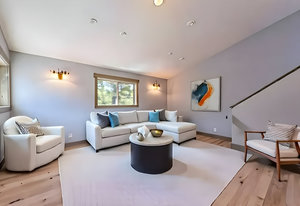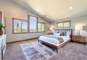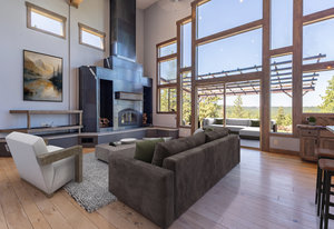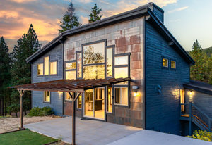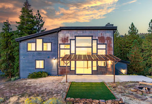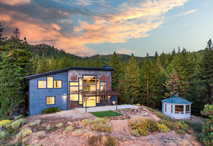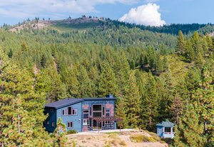 Welcome to your own private mountain retreat, where stunning westerly views of the Pacific Crest skyline give way to unforgettable sunsets. Set on 18 acres of pristine alpine landscape, this mountain-modern home was thoughtfully designed in 2016 for both everyday comfort and effortless entertaining. Step inside to a spacious great room with soaring vaulted ceilings and an open-concept design that seamlessly connects indoor and outdoor living. A cozy bonus game room just off the main living area invites friendly games of pool or relaxed gatherings. The main level features two comfortable bedrooms, a den that could easily be a 4th bedroom and a separate laundry room, while the primary suite upstairs offers panoramic views and a peaceful place to unwind. The home’s striking exterior showcases wrapped cedar siding, sleek hot rolled metal accents, creative window placement, and industrial-style mesh railings—all combining to create a bold yet welcoming aesthetic. Inside, rich hickory floors, gray-washed alder cabinetry and trim, and leathered granite countertops add warmth and sophistication. This home offers flexible living options today and exciting potential for tomorrow. The zoning allows for expansion or the creation of a second dwelling—perfect for extended family, a guest house, an income-generating short-term rental. Whether you're looking for adventure or serenity, this one-of-a-kind property delivers a true slice of Tahoe paradise. Come explore the possibilities!