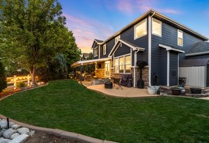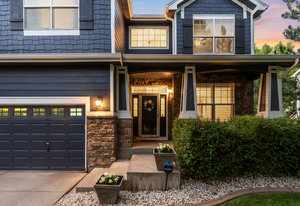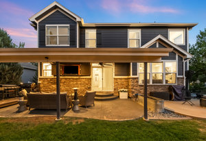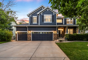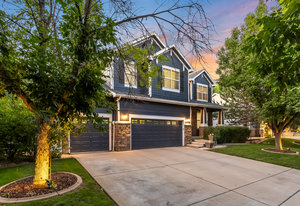 You must see this exceptionally remodeled home in The Village at Harmony Park! This sensible floor plan features 5 bedrooms upstairs (plus a loft) and a generous 3 car garage! Tastefully updated over time, the exterior was freshly painted with Benjamin Moore Aura (15 year no fade) paint. Enter the bright vaulted entry with beautiful hardwood floors throughout the main level as well as upstairs. The updated kitchen has new quartz countertops, stainless appliances with a gas range and a convenient walk-in corner pantry. Host large gatherings of friends and family in the spacious entertainer’s dining room! Recessed lighting, designer paint colors and updated lighting fixtures throughout. Switch on the cozy gas fireplace in the main living area. Upstairs, the primary suite is expansive with vaulted ceilings, a gorgeous, updated spa-like 5-piece bath and large walk-in closet. Additional bedrooms easily accommodate queen or even king beds. Downstairs, the full basement is nicely finished with excellent bonus space inclusive of large egress windows, a second family / media room and an incredible gym (flooring and wall panels included)! Backing to the green space of Quail Creek Tributary, the outdoor living area is surrounded by trees and professional landscaping…so peaceful and private. You won’t want to watch TV indoors again! Enjoy calm evenings socializing around the fire pit and relaxing on the spacious covered patio with ceiling fans, recessed lighting and surround sound. You’ll love growing your own vegetables in the raised garden beds. The storage shed is included (as-is). The Orchard Town Center is 7 mins away with many dining and shopping options! Close proximity to Amherst Park, Big Dry Creek Park and the local elementary, middle and high schools. Centrally located between Denver and Boulder with easy access to I-25. This meticulously maintained property has been upgraded inside and out and may be your next perfect home!