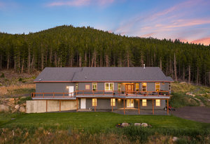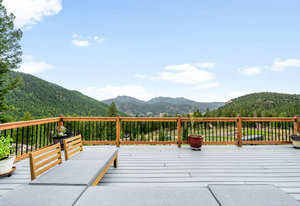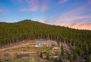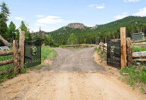 Embrace mountain living in this expansive and updated home on 36 acres with all the updates, amenities and internet connectivity of living right in town! The current owners have significantly updated this property, recent additions include: a huge 1,200 sqft composite deck to take advantage of the beautiful views and serene setting. New roads and surfaces as well as 4,300 sqft of flat lawn space (grass and plants under warranty). New pond with a stunning waterfall. Inside, the home is beautiful with a spacious chef’s kitchen complete with an island and a peninsula as well as a large dining area open to the outdoors with views over the pond out west. Tall and open living room with a gas fireplace. 3 spacious bedrooms on the main level as well as main level laundry (second laundry in basement). Oversized 3 car garage for all of your gear and toys! The primary suite has some of the best views in the house…start your day each morning waking up in this beautiful paradise. The full walkout basement was recently finished and is essentially brand new! So spacious and bright with numerous windows and doors to take you outside. There is a brand new full second kitchen (complete with a dishwasher and range) for guests or in-law / nanny’s quarters. 2 additional bedrooms (very spacious) as well as a dedicated fitness room. 2 large bathrooms with on-trend tile, heated flooring and walk-in showers. The media room is fantastic with an attached wine cellar. Plenty of additional storage. Fast fiber Internet (very rare for Golden Gate Canyon). The corrals are all set up for horses / livestock and chickens. This 36 acres feels much larger…siding to state park land where the current owners have never seen a person. The property is gated and the main road is also gated with a keypad…very secluded, secure and private. 30 minutes to Golden, Black Hawk or Nederland. Fulfill your mountain dream in this move-in ready luxury home today!