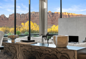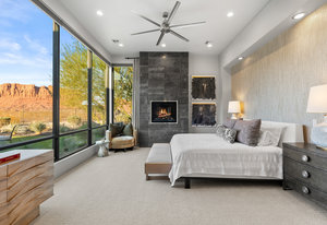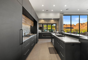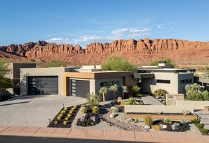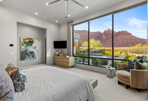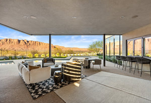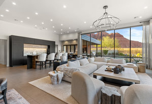 Positioned on a rare .55-acre rim lot overlooking the red rock majesty of Snow Canyon State Park, this 4,300+ sq. ft. single-level home is a true masterpiece of design, comfort, and livability. From the moment you enter, walls of glass frame the canyon’s dramatic beauty, while sleek architectural lines and warm, natural finishes set the stage for refined desert living.