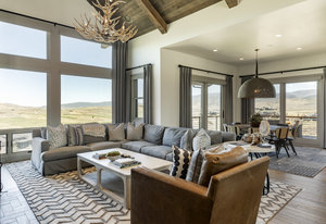 This stunning 4-bedroom, 3.5-bath Cottonwood floor plan at Victory Ranch spans 3,226 sq ft and captures breathtaking views of Deer Valley, the Uinta Mountains, and the Rees Jones–designed golf course. Thoughtfully designed by Barclay Butera, the interior showcases Duchateau flooring, rich barnwood accents, a wood-burning fireplace, beautiful furniture, designer wallpaper and custom lighting and draperies in each room. The main level features an open floor plan with great room, vaulted ceilings, gourmet kitchen with Wolf and Sub-Zero appliances, coffee bar, wine fridge, dining room, laundry room, mud room, powder room and a King en-suite with private balcony. On the lower level you will find 3 bedrooms, including a spacious bunk room, 2 bathrooms, and a separate living room. Venture outside and dine on the newly stained deck or gather around the fire pit while soaking in the scenic views and peaceful evenings at the ranch. A perfect blend of rustic warmth and modern elegance, schedule your showing today and make this beautiful furnished cabin home yours!