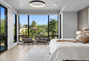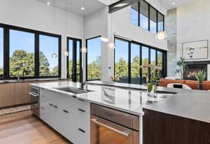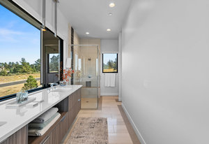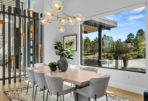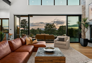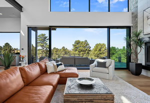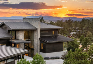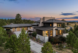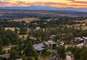 Named Denver Magazine’s 2021 Home of the Year, this residence is as refined as it is remarkable. A rare mountain-view 5 bed | 6 bath 2+ acre estate located in the coveted, gated Colorado Golf Club community, this home is perfectly poised to offer mile high living at its finest on one of the neighborhood's most desirable lots. At its heart, the great room boasts a gas fireplace with a striking floor-to-ceiling stone | tile statement wall and 10-foot, 5-panel sliding doors opening to an enormous deck with sweeping Front Range views. The elevated kitchen features professional-grade appliances, quartz and soapstone accents, and a back kitchen worthy of a chef. Framed within a gorgeous vista, the primary suite offers a spa-inspired bathroom, glass-faced shower, unique dual vanities, and a sizeable closet. Grounded by an excellent open flow, the main level continues with an inviting dining room, sunlit office, laundry room, powder room, and anomalous main level guest bedroom with en suite bath. Upstairs, a private suite perched above the trees is one that your guests won't want to leave. The walk-out lower level impresses with a stylish rec room, family room, climate-controlled wine room, gym, 2 additional bedrooms with en suite baths, and ample unfinished storage. Outdoors, the serene setting unfolds like a nature preserve with manicured landscaping, expansive patios, and a large deck - creating multiple venues for relaxation and entertaining. A true oasis, every amenity has been considered from a top-tier Savant whole-home audio system to a 6+ car garage. Unmatched, the community offers world-class golf and miles of private trails. To put it simply, impactful living opportunities like this are exceedingly rare and almost impossible to replicate—an award-winning estate exceptionally positioned among soaring pine trees that embodies elegance, privacy, and peacefulness while showcasing extraordinary architecture, modern design, and an impeccable selection of finishes.