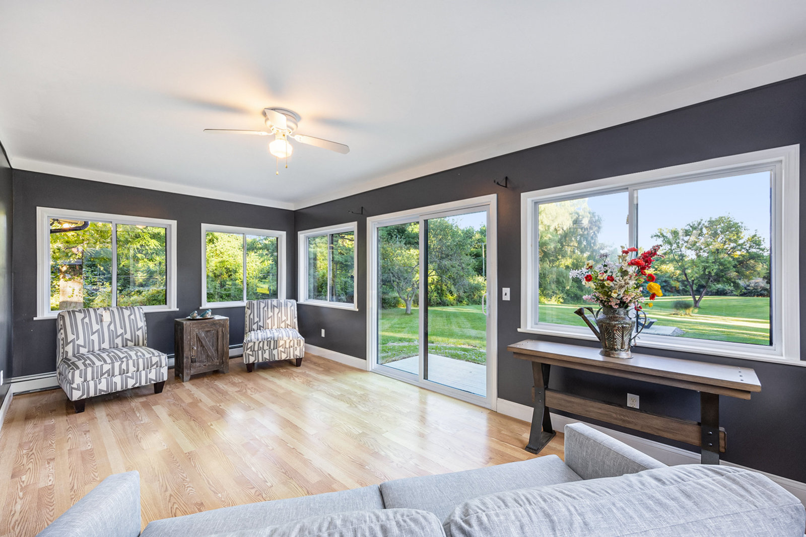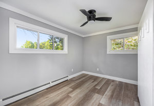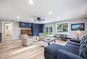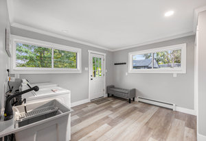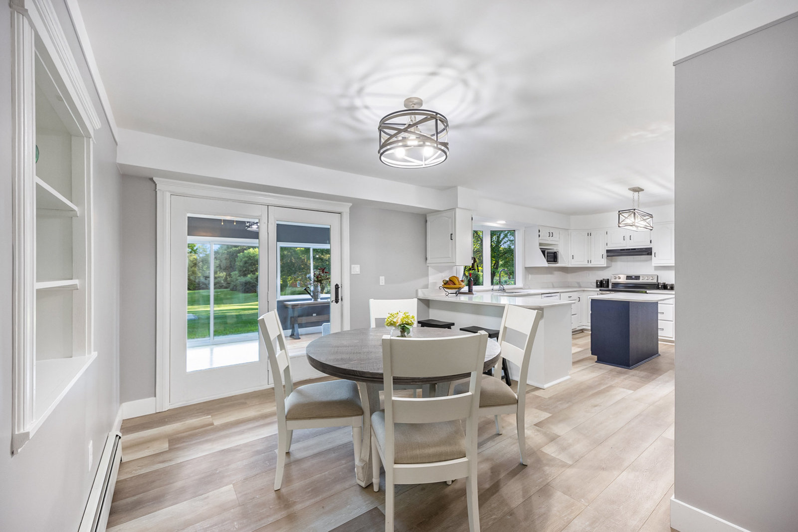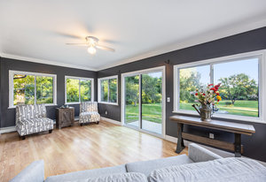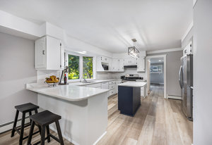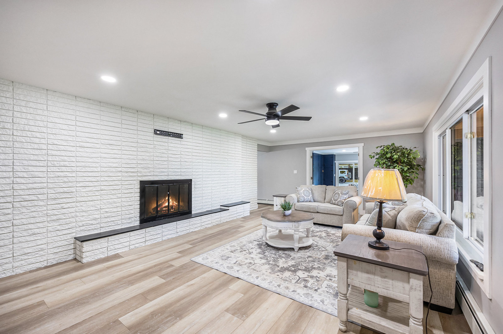 Step inside and you’ll find a completely refreshed interior featuring brand new flooring, updated bathrooms, freshly painted and updated lighting throughout. The spacious living room is anchored by a charming brick fireplace, while the large family room provides the ideal spot for entertaining. The four-season room overlooks the backyard and makes for a cozy retreat year-round. A thoughtfully designed laundry room doubles as a drop zone with plenty of storage.