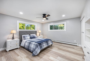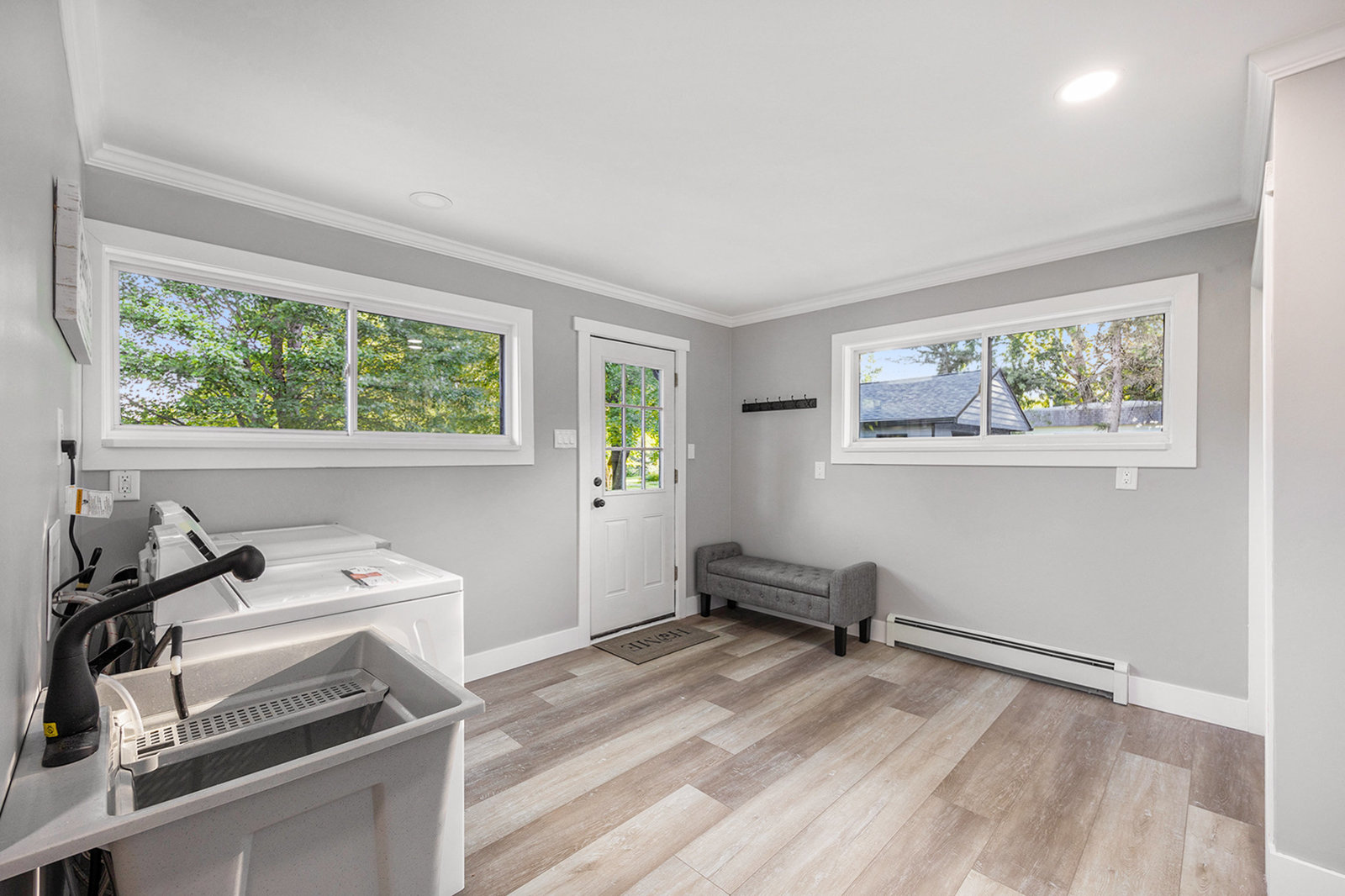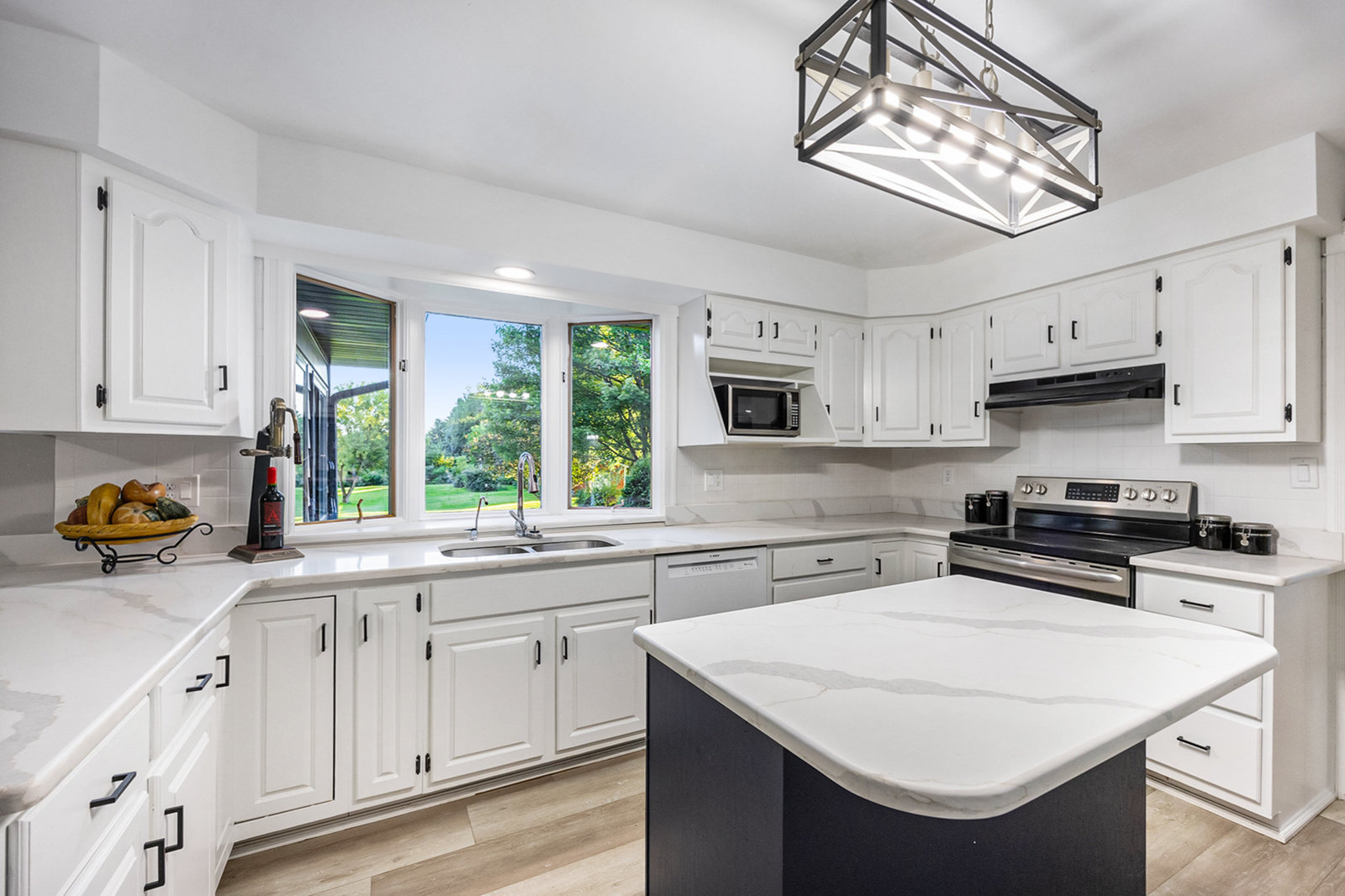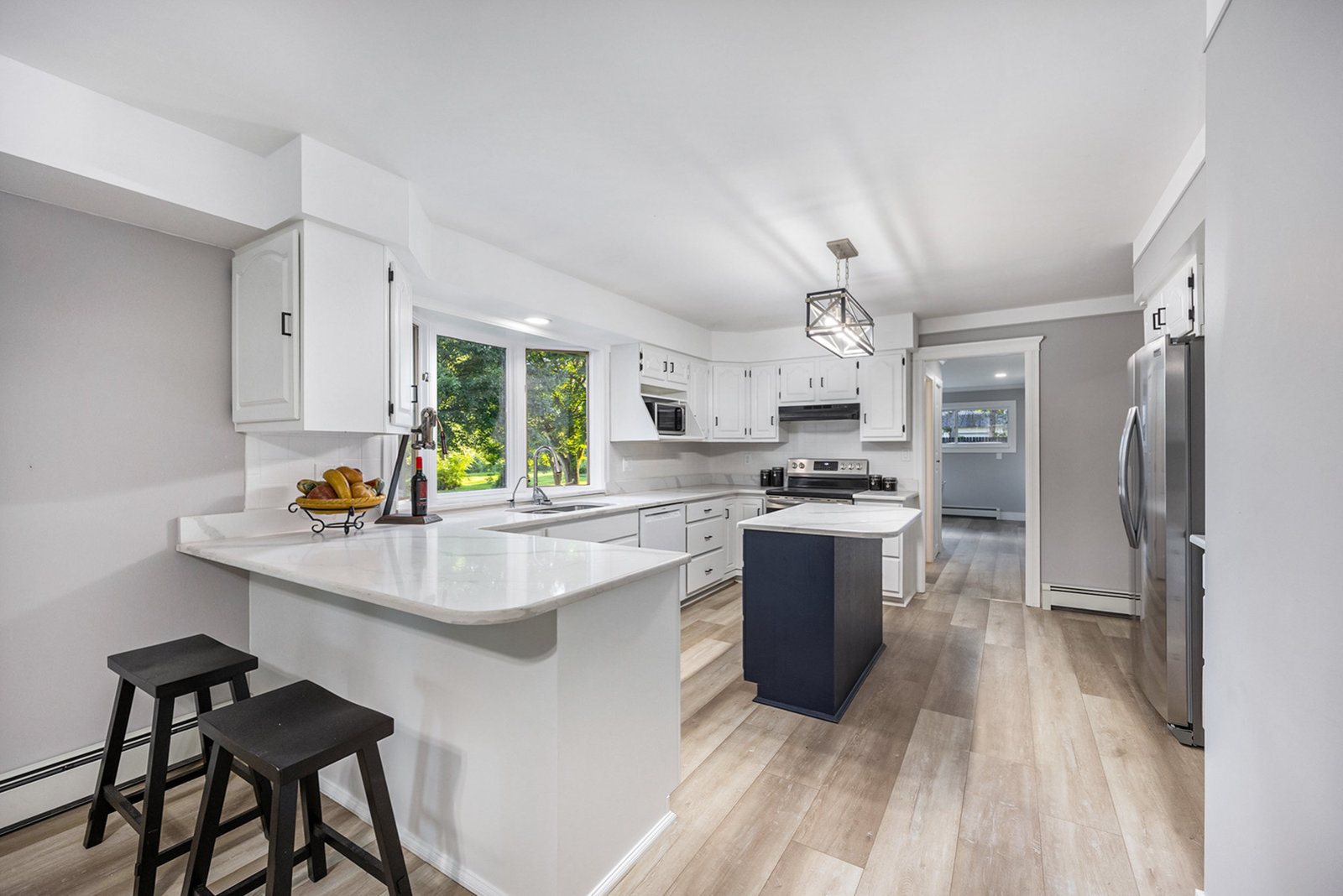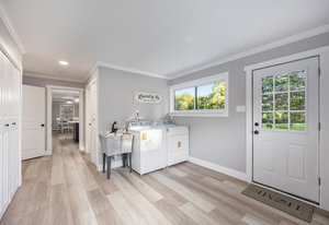 Step inside and you’ll find a completely refreshed interior featuring brand new flooring, updated bathrooms, freshly painted and updated lighting throughout. The spacious living room is anchored by a charming brick fireplace, while the large family room provides the ideal spot for entertaining. The four-season room overlooks the backyard and makes for a cozy retreat year-round. A thoughtfully designed laundry room doubles as a drop zone with plenty of storage.