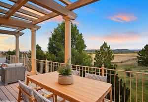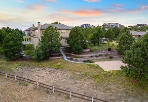 Offering both privacy and views, this 6 bed | 6 bath mountain modern home has been FULLY updated down to the door hardware, creating a rare opportunity to move into the gated Village at Castle Pines community right away. The dramatic two-story foyer welcomes you into a sunlight-filled residence designed for seamless indoor | outdoor living. The coveted chef’s kitchen features Quartzite countertops, custom tile backsplash, and a breakfast nook with built-in coffee bar, opening to an expansive deck with breathtaking mountain vistas, unforgettable sunrises, and Castle Rock’s twinkling night lights. Adjacent to the kitchen, the airy family room is anchored by a stone fireplace and a window wall framing picture-perfect views, with a nearby flex room ideal for play, work, or hobbies. Restoration Hardware-inspired living and dining areas set the stage for memorable gatherings, while a quiet front office, guest powder bath, laundry, and three-car garage complete the main level. Upstairs, the serene owner’s suite offers a sitting area, gas fireplace, and a spa-inspired primary bath with spacious walk-in closet. Three secondary bedrooms, an upstairs loft, and two refreshed bathrooms complete the upper floor. The finished lower level is designed for entertainment and gathering friends and family alike with a media lounge, wet bar, fitness/guest room, steam shower bath, additional powder room, and theater with walk-out access to the backyard. The lower-level exterior boasts a flat back yard, sunrise views, and sports court. Located just 30 seconds from gate 5 which is close to schools and highway access, a 5-minute walk to The Summit Club pool, park, and playing fields, and a 2-minute drive to the recently renovated and expanded Country Club at Castle Pines, this home's location can't be beat. With premium features including a structural steel subfloor, this residence is a perfect balance of modern features and livability in one of Colorado's most sought after communities.