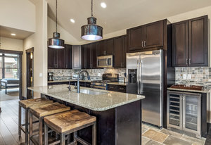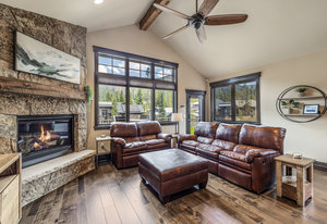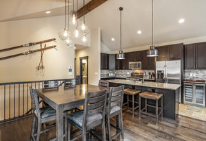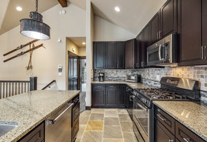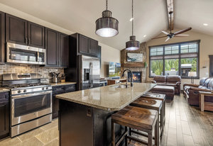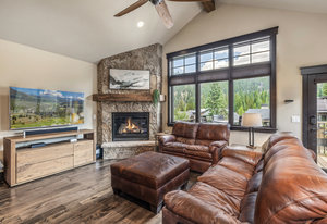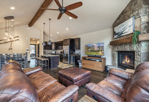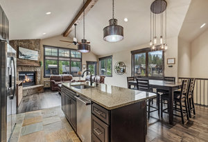 This turnkey 3-bedroom, 3-bathroom mountain retreat combines comfort and style with thoughtful finishes throughout. The main floor boasts vaulted ceilings and expansive windows framing views of Porcupine Peak and Wolf Rock. After a day of adventure in the Rocky Mountains, relax by the living room fireplace, or gather in the well-appointed kitchen featuring a gas range, granite countertops, stainless steel appliances, and a wine/beverage fridge perfect for effortless entertaining.