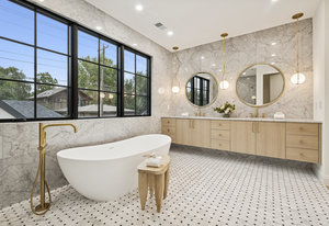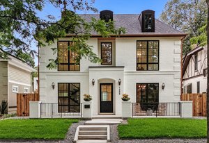 Absolutely exquisite East Wash Park home. Situated on a quiet tree-lined street ideally centered between Wash Park & the shopping and restaurants on S Gaylord. This elegant home was designed to maximize the yard for indoor/outdoor living. Transitional design with rich, layered textures that combine with an airy, organic feel. The main floor features a chef’s kitchen with Wolf & SubZero appliances, natural wood floors, a striking dining room surrounded by oversized windows, a custom fireplace mantle with an art TV, beautiful custom millwork, and a show-stopping floating staircase set against a dramatic wall of windows. A private home office color drenched with custom built-ins and a striking entryway, is the first impression. Upstairs, you’ll find four ensuite bedrooms, including a luxurious primary retreat with marble finishes, a soaking tub, oversized shower, and sophisticated gold fixtures. The fully finished basement offers soaring ceilings, a spacious family room with space for a theater and game room, two additional bedrooms, and a full bath—perfect for guests or extended living. The basement offers a ton of flexibility for a home gym, pool table, or guest suite. Just a short stroll from Wash Park and the shops and dining along Gaylord Street, this home blends modern charm with everyday convenience in one of Denver’s most desirable neighborhoods.