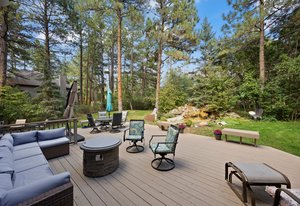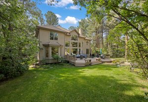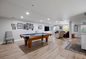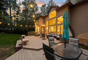 Tucked away on a private cul-de-sac in The Village at Castle Pines, this home blends high-end finishes, smart upgrades, and plenty of spaces to relax and entertain. The main level is filled with light from soaring ceilings and oversized windows. The living and dining rooms connect to an updated kitchen with quartz countertops, hardwood floors, under-cabinet lighting, and new stainless appliances. The family room adds warmth with a custom floor-to-ceiling stone fireplace, surround sound, custom walnut built-ins, and remote (and app) controlled shades, while an office with French doors and a dual-entry bath offers flexible use. Upstairs, the primary suite feels like a retreat with crown molding, a sitting nook, new shutters, and a custom California Closet system. The spa-style bath features dual vanities, a frameless glass shower, and an oversized soaking tub. Secondary bedrooms are spacious with walk-in closets and updated baths, and the laundry room offers ample storage and a utility sink. The finished basement is made for fun with a sleek bar, built-in shelving, game space (pool table is included in the sale), a media space for a 75-inch TV, and a conforming bedroom with its own bath. Wine lovers will love the temperature-controlled cellar with slate floors and storage for 800+ bottles. Outside, the backyard retreat offers an expansive deck with bistro lights overhead, zipline, fountain, mature trees, and a three-quarter acre corner lot for privacy and play. The oversized garage impresses with epoxy floors, overhead storage and built in cabinetry, and an EV charger. Every detail has been considered—from smart lighting and remote-controlled shades to new carpet, updated fixtures, and new HVAC. The Village at Castle Pines means 24/7 security, trails, pools, tennis, fitness centers, and two Jack Nicklaus–designed golf courses—plus a true sense of community minutes from Denver and Castle Rock. This home has been maticulously maintained and is ready for its new owner!