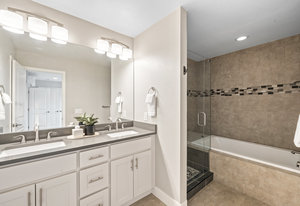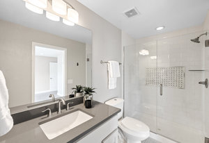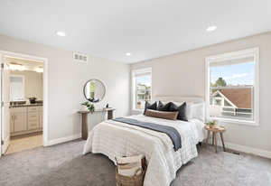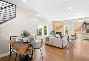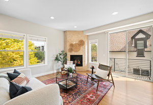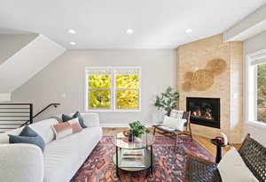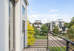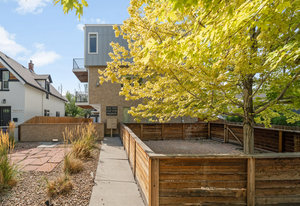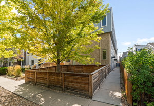 Not your cookie-cutter townhome—this Sloan’s Lake end-unit comes with style, sunshine, and something rare: a private fenced courtyard all its own. Perfect for morning coffee, weekend BBQs, or letting the dog stretch out, it’s an outdoor space you’ll hardly ever find in city townhomes. Inside, the open-concept main level is filled with natural light and finished with hand-troweled walls and hardwood floors. The kitchen is the true heart of the home—oversized and thoughtfully designed with 42” white cabinetry, a generous pantry, expansive quartz counters, a designer backsplash, and stainless appliances including a gas range. Whether you’re cooking solo or hosting friends and family, there’s space for everyone. The adjoining living area features a gas fireplace with floor-to-ceiling tile, custom built-ins for books and treasures, and direct access to the deck for easy grilling right off the kitchen. A powder bath and a walk-in storage closet complete this level. On the ground level, a private flex suite with its own attached bath sits just off the entry—perfect as a guest suite, office, or workout space. The upper level offers two spacious bedrooms, each with an ensuite bath and generous closet space. The primary suite includes dual closets, a spa-inspired five-piece bath, and a dedicated mini-split for personalized comfort, while the secondary suite features its own private balcony. A stackable laundry closet is conveniently located just outside the upstairs bedrooms. Rounding it all out: an attached two-car garage plus two extra parking spaces just outside of garage (a rarity in this neighborhood). With three bedrooms, four bathrooms, and thoughtful touches throughout, this Sloan’s Lake townhome is a standout urban retreat on a desirable interior block just 4 blocks to the lake.